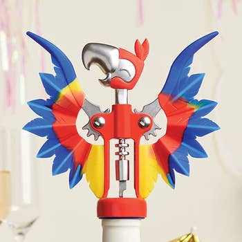 With a curved bill and soft plumage, this drinking sidekick is ready to open wine bottles. He's a multi-functional bird who a-parrot-ly likes to have fun! Includes: Double hinge for extra leverage, Beer cap opener, Serrated foil cutter Material: Brushed aluminum metal & soft-touch plastic Care: Hand wash recommended CDU Dims: 8" x 6.25" x 7" Wholesale cost each: $9.99 Retail Cost each: $19.199