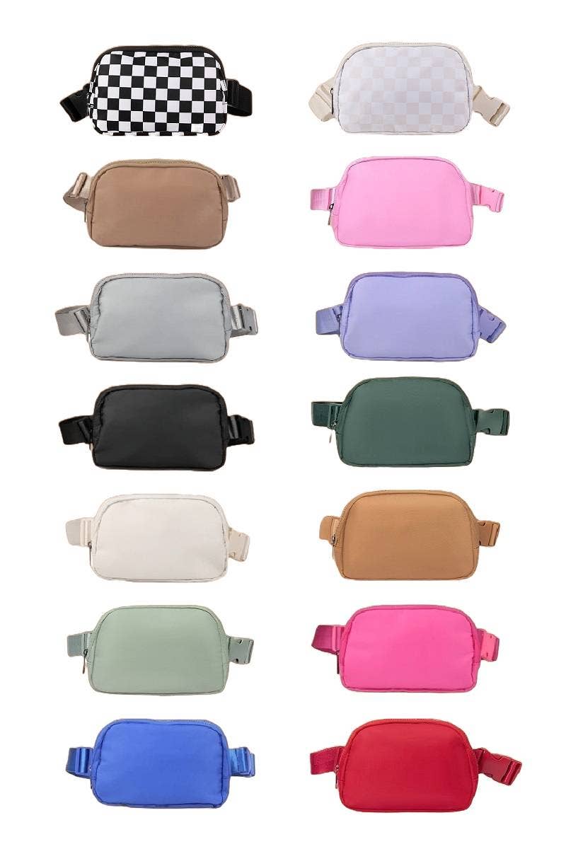 ***Image usage is allowed to the buyers who purchase from us via Faire only. SI-25599 EVERYWHERE CROSS BODY FANNY PACK BELT BAG - ELASTIC MESH POCKETS - BIG MAIN POCKET & HIDDEN BACK ZIP POCKET - COLOR MATCHING ZIPPERS - GUNMETAL ZIPPER HANDLES - 1.5" WIDE HIGH QUALITY BELT STRAP & BUCKLES - HEIGHT: 6", WIDTH: 9", DEPTH: 2.5" SI-25599 Everywhere Cross Body Fanny Pack Belt Bag () IVORY-162912 ASH MOCHA-162913 BLACK-162915 LAVENDER-168349 ROYAL BLUE-170230 LT GREY-170408 CHARCOAL-175669 BONE-176125 DKFOREST-176127 LTCAMEL-176128 SAGEGREY-176130 BEIGE CHECKERED-182320 BLACK CHECKERED-182321 LT ROSE-186450 BROWN LEOPARD-186451 BLACK LEOPARD-186452 SI-25599 Everywhere Cross Body Fanny Pack Belt Bag () IVORY-162912 ASH MOCHA-162913 BLACK-162915 HOT PINK-162916 LAVENDER-168349 ROYAL BLUE-170230 BONE-176125 DKFOREST-176127 LTCAMEL-176128 SAGEGREY-176130 BEIGE CHECKERED-182320 BLACK CHECKERED-182321 LT ROSE-186450 BROWN LEOPARD-186451 BLACK LEOPARD-186452 RED CHE