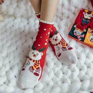 This listing features a 4-piece set priced at $3.30 per piece, totaling $13.20 for the full gift box set. Stylish, coordinated, and perfect for gifting or display as a bundle. 4Pairs - Bow HOHOHO Nutcracker Printed Christmas Bundle Gift Socks Set Size : 9 - 11 Material : 100% Polyester Enjoy cozy holiday vibes with this 4-pair fuzzy socks set featuring playful and festive prints. A perfect seasonal gift or comfy addition to your winter wardrobe.