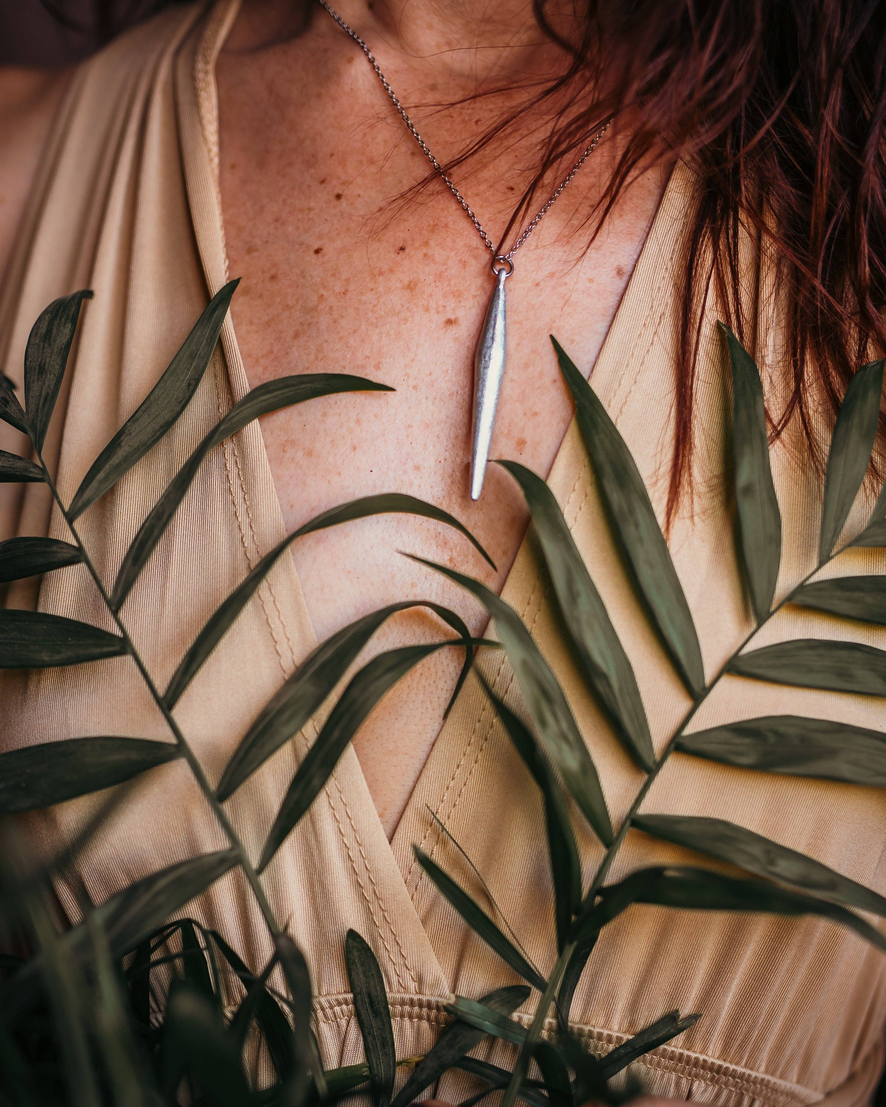 This women's necklace is an ethnic, handcrafted piece made by hand in Laos using recycled materials from discarded wartime ordnance, transformed into objects of symbolic and aesthetic value. The chain is made of stainless steel, durable and suitable for everyday wear. The gong-shaped pendant, inspired by Buddhist monasteries, is richly detailed and holds deep spiritual and cultural significance, evoking harmony, meditation, and tradition. A piece of jewelry with a sophisticated character that naturally suits any outfit, from everyday wear to special occasions. It can be paired with the Non La earrings to create a coordinated look with a strong cultural appeal. It is also an original gift idea for those who love Asian culture, authentic craftsmanship, and ethnic accessories with profound meaning. Details * Pendant diameter: approximately 4.5 cm * Necklace length: 50 cm * Chain material: stainless steel * Craftsmanship: handmade, each piece is unique