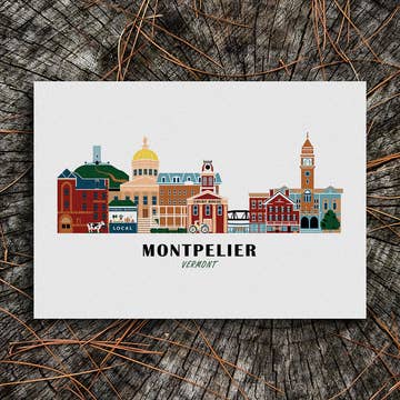 This Woodstock cityscape art print highlights the iconic buildings and monuments in Woodstock, Vermont, arranged like a city skyline. Features the Woodstock Village Historic District, the Historic Middle Covered Bridge, Billings Farm and Museum, Norman Williams Public Library, Windsor County Clerk, Marsh-Billings-Rockefeller National Historical Park and more. To give back to the wild places we love, we donate at least 1% of our sales to organizations dedicated to environmental conservation. We are proud to use recycled and responsibly sourced materials to create our products. Made in USA. This archival quality art print has been printed with long-lasting pigment inks on thick, recycled cardstock that comes from a paper mill powered by wind energy. It comes packaged with rigid chipboard backing to prevent bending inside a clear, plant-based PLA sleeve that is certified compostable. Note: Frame/mat not included.