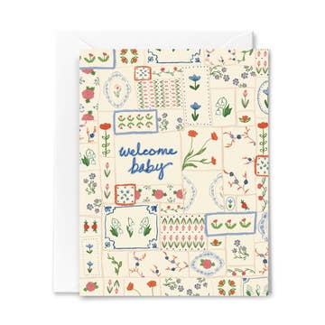 Welcome sweet wonder! A darling bundle of joy wrapped and swaddled in a meadow of flora and fauna. Songbirds, mushroom and fallen fruit. Offset printed on recycled paper in Canada. Blank card measures 4.25 x 5.5 inches and includes A2 envelope.