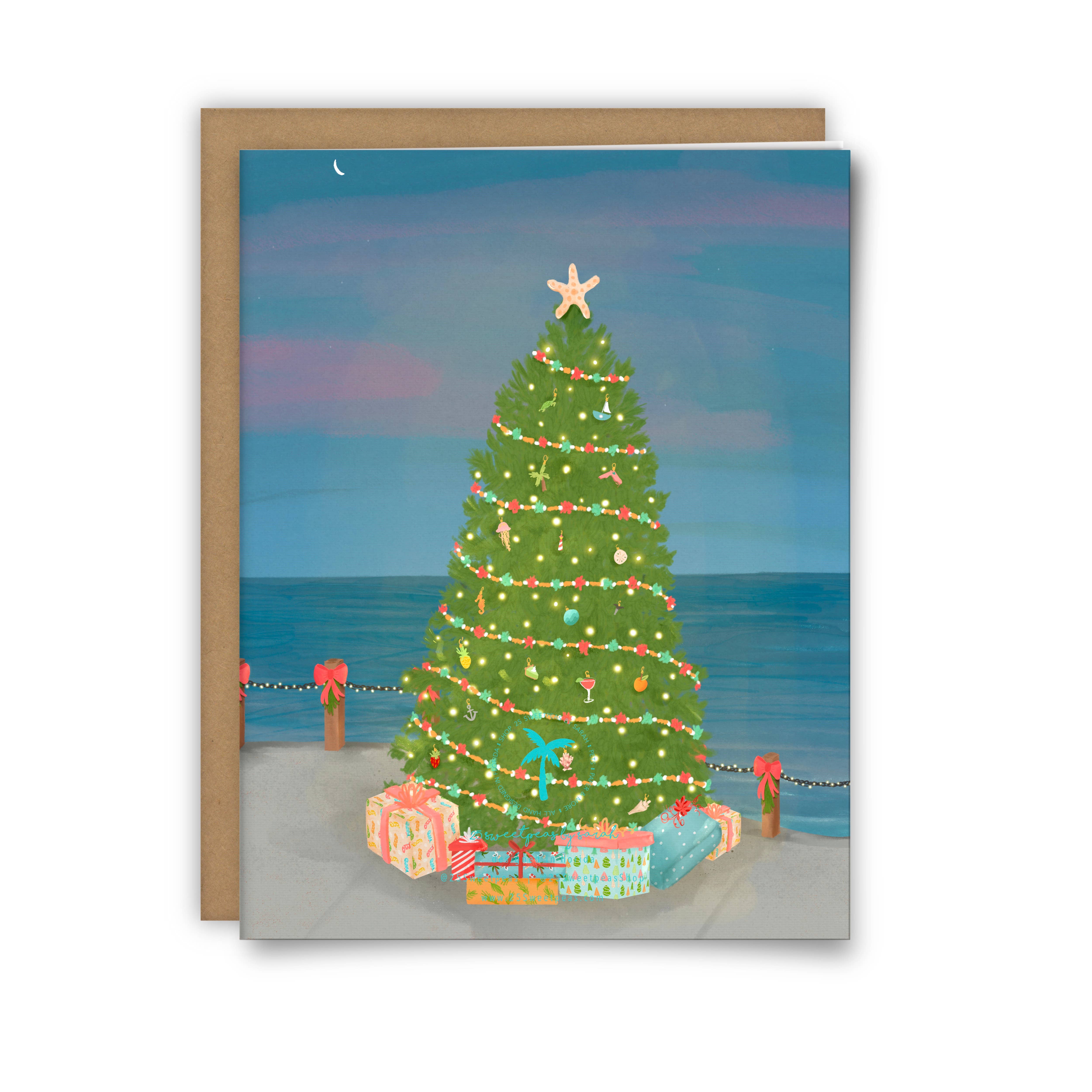 Wholesale Sea Glass Sea Foam Christmas Tree Print Holiday Card