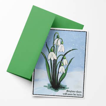 Blank inside. Size: 4.25” x 5.5”. Printed on: Mohawk Superfine 130# cardstock. Sold as: Single card or box set of 8