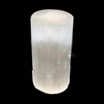 - A Carved Selenite Crystal Lamp adds a warm glow and good vibes to your space. - Measures 6" tall, and 2.25" diameter at base. - 6' USB cord with LED bulb included. - Selenite crystal emits and calm and soothing energy. It is used for protection and dispelling negative energy, and promotes positivity, purity and honesty. It is known to align the chakras and raise awareness.