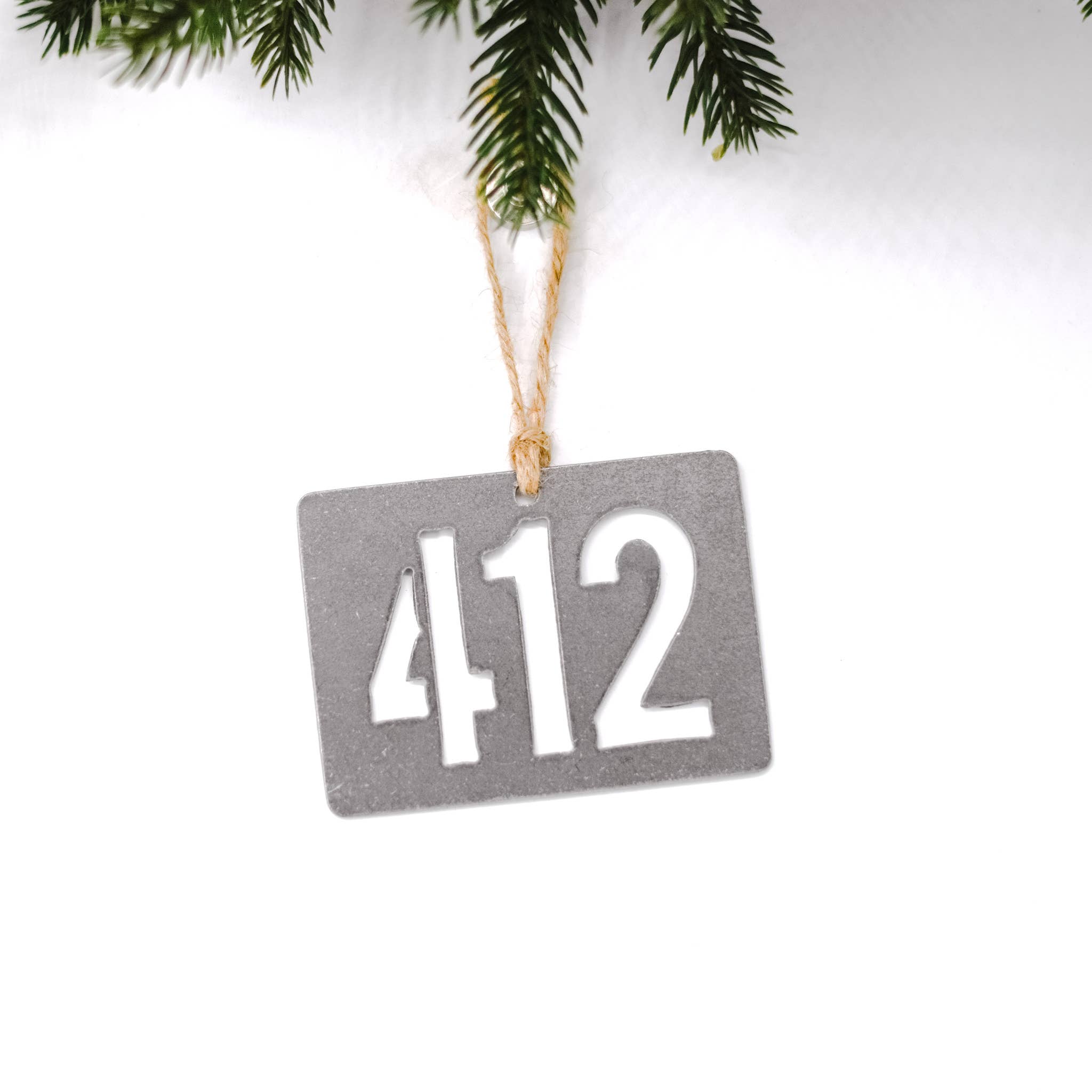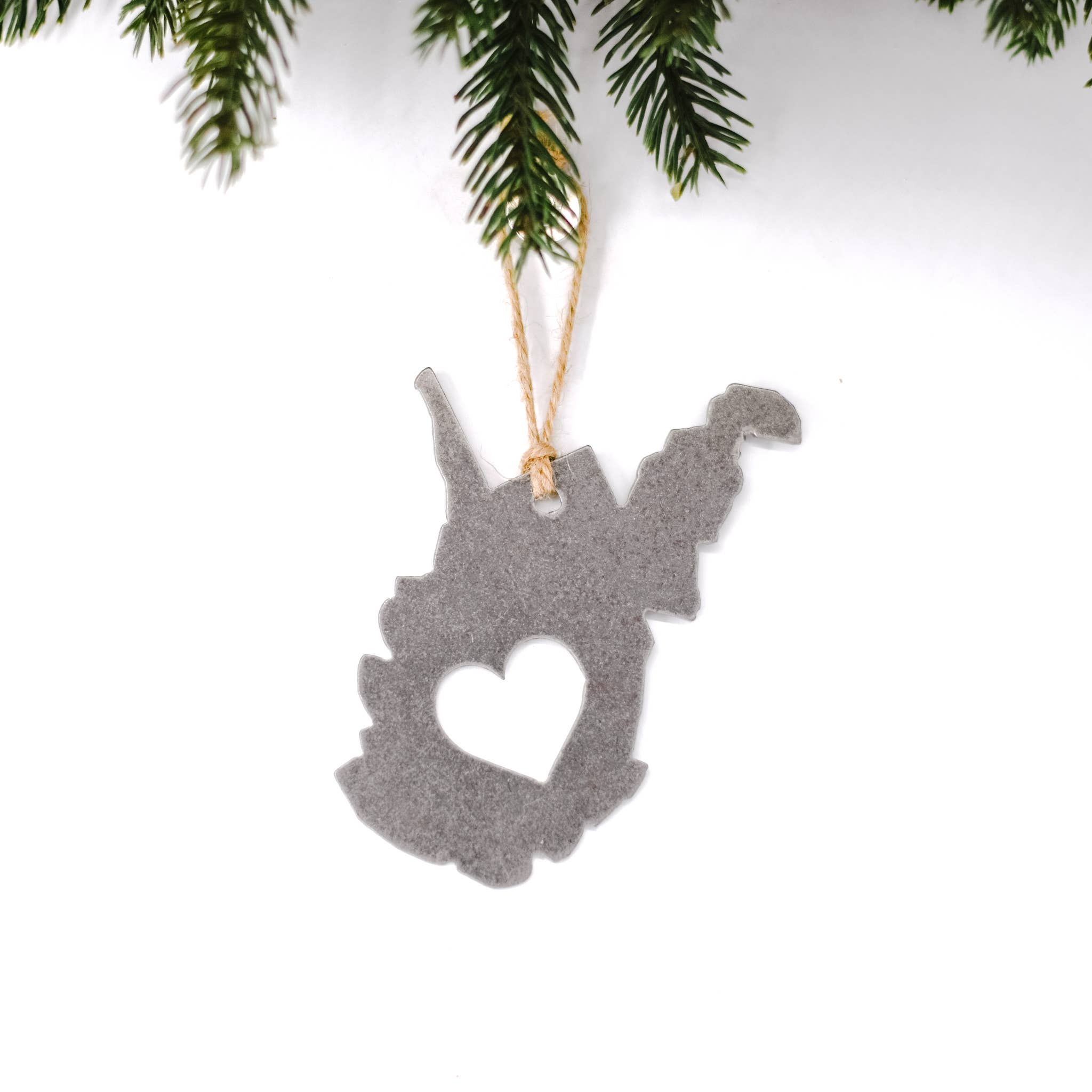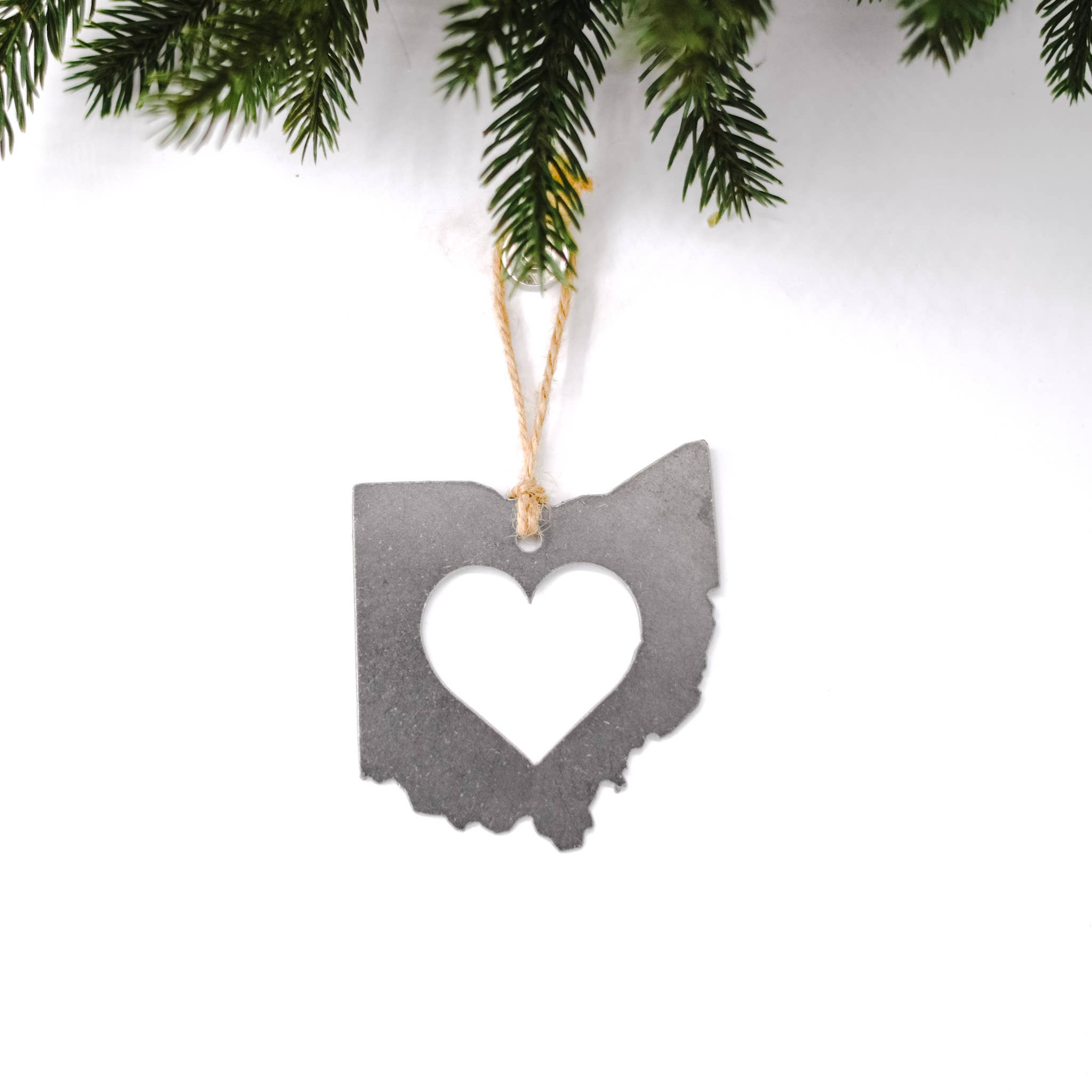 Most of our ornaments average approximately 3.5-4.5" at their widest point, depending on the shape of the ornament. Care instructions: this ornament is made out of steel, so we recommend storing it in a low moisture area. Because we use recycled steel, each piece will be unique and may have slight markings or patina. All ornaments come with twine and a gift tag ready to hang or give.