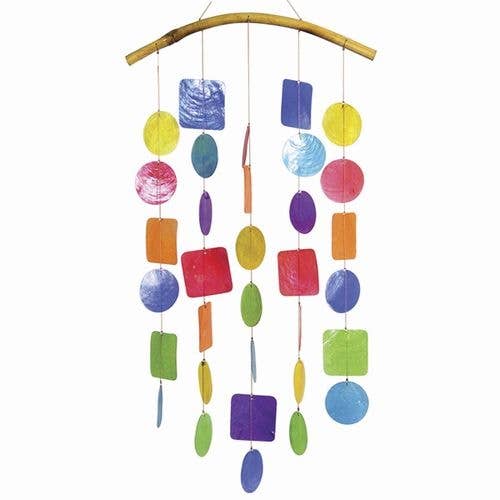 This traditional design's soothing tones transport you to the tropics, while the moon and stars carry you into the evening sky. An ideal indoor chime would make a cute mobile in a child's bedroom. Please note that this is not a toy; keep it out of reach of infants and children. Formerly named the Dark Blue Capiz Chime.