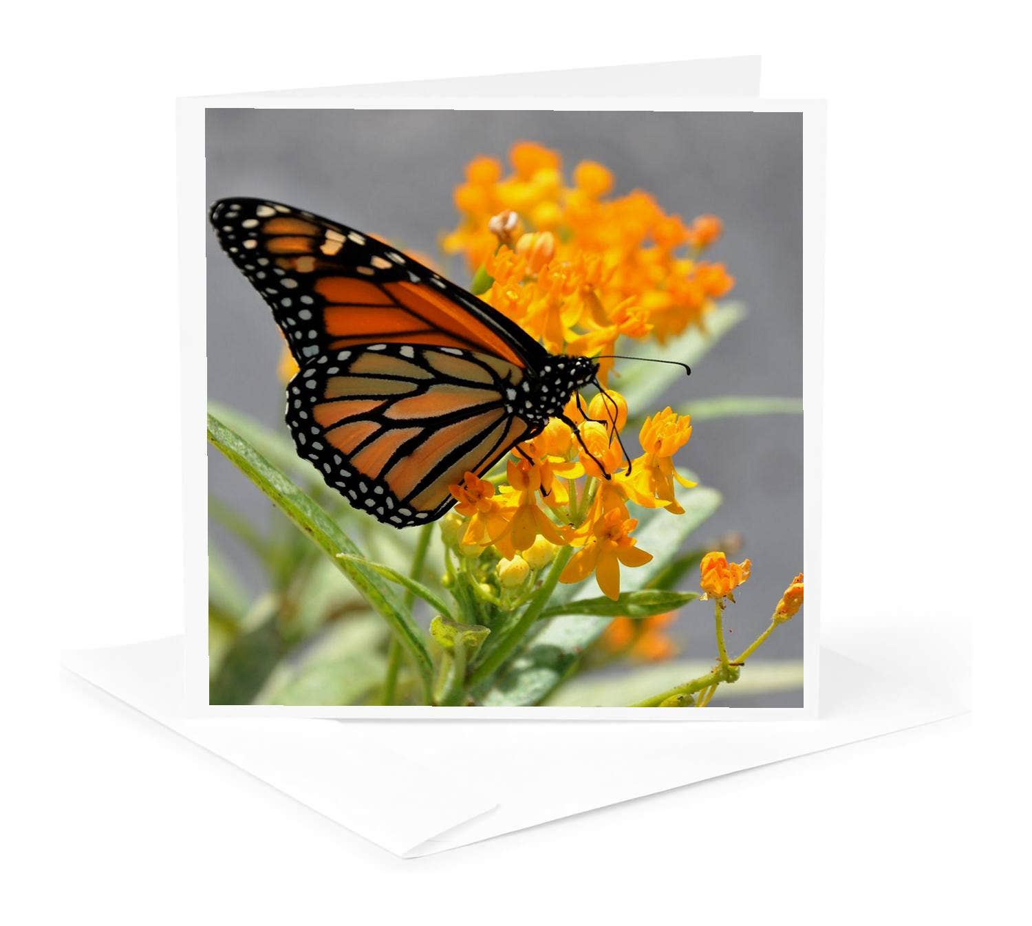 description Two beautiful monarchs dance in flowering goldenrod. inside greeting blank format 3.5 x 4.875 inches, folded (4Bar) printing offset-printed in Massachusetts paper FSC-certified cover made from 100% post-consumer waste envelope white origin USA item no. SN2531 / BN2531