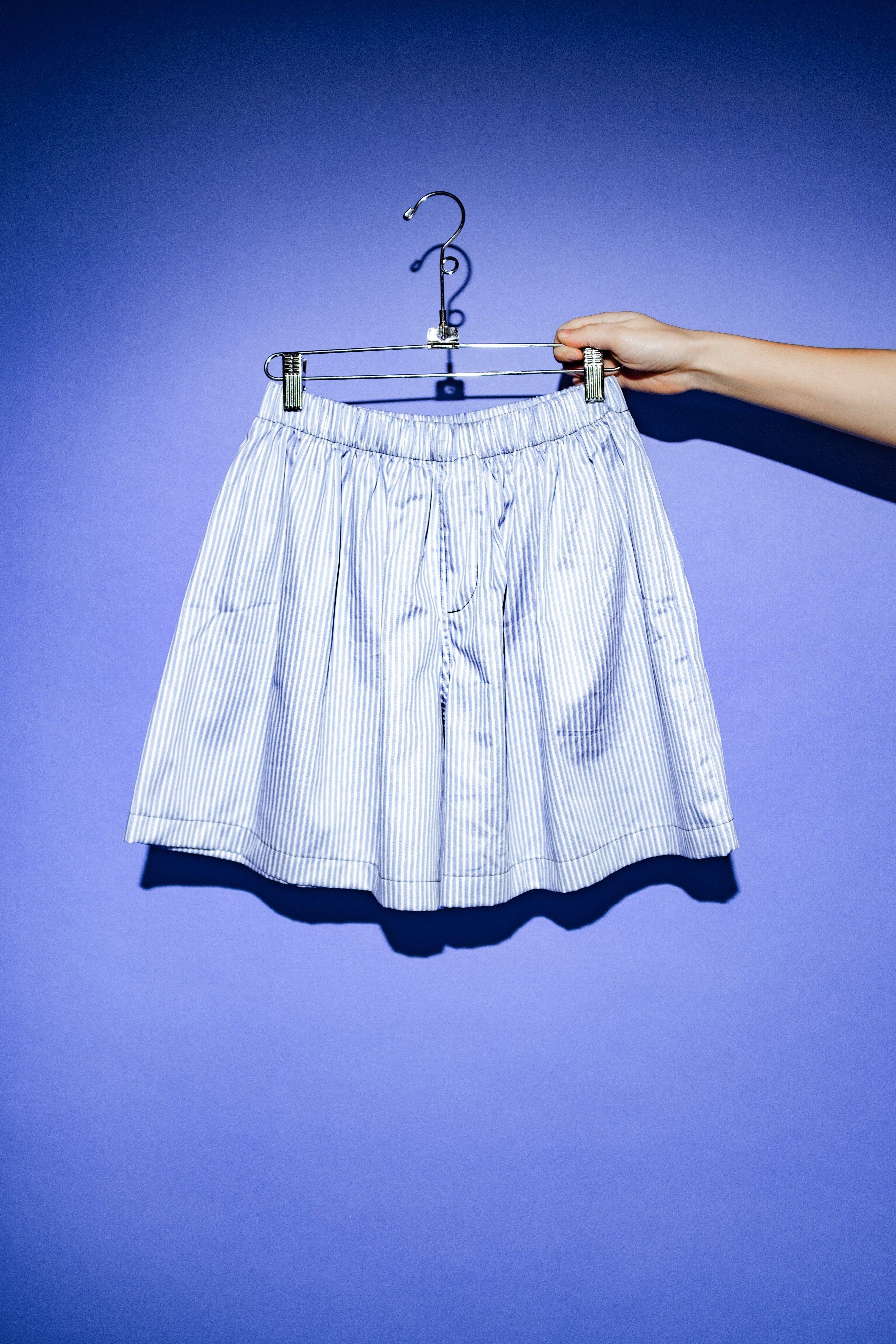 Oversized boxer shorts with back pocket detail. Mid-thigh length. Relaxed leg. 100% Cotton. Can be worn at home or going out. Jayme is wearing XS/S. She is 5'6" with a 28” waist. measurements are as follows: Waist: XS - 24" S - 26" M - 28" L - 30" XL - 32" Waistband when stretched: