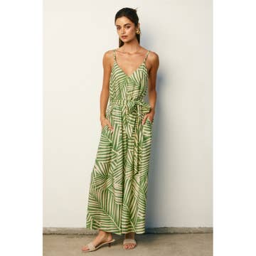 The Ingrid Dress is a breathable and lightweight pullover dress in an abstract leaf print. Wear this relaxed fit dress for a casual day out or dress it up w/ scrappy heels. Perfect to throw over and go, the effortless Ingrid Dress is midi length dress and has side pockets. ⢠100% Cotton ⢠Sleeveless ⢠Side Pockets ⢠Midi Length ⢠V-Neck ⢠Hand Wash in Cold & Hang to Dry