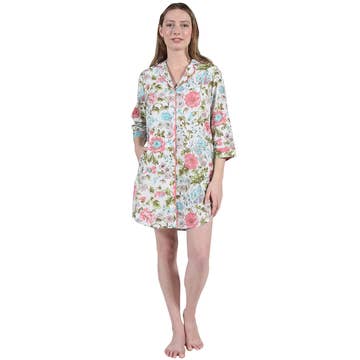 100% Cotton Nightshirt or Beach Cover Up, packaged in matching drawstring bag; featuring the whimsical art of Emerson Quillin. One Size Fits Most. The nightshirt measures 36 inches from high point shoulder and laying flat the chest measures 24", (48" circumference).