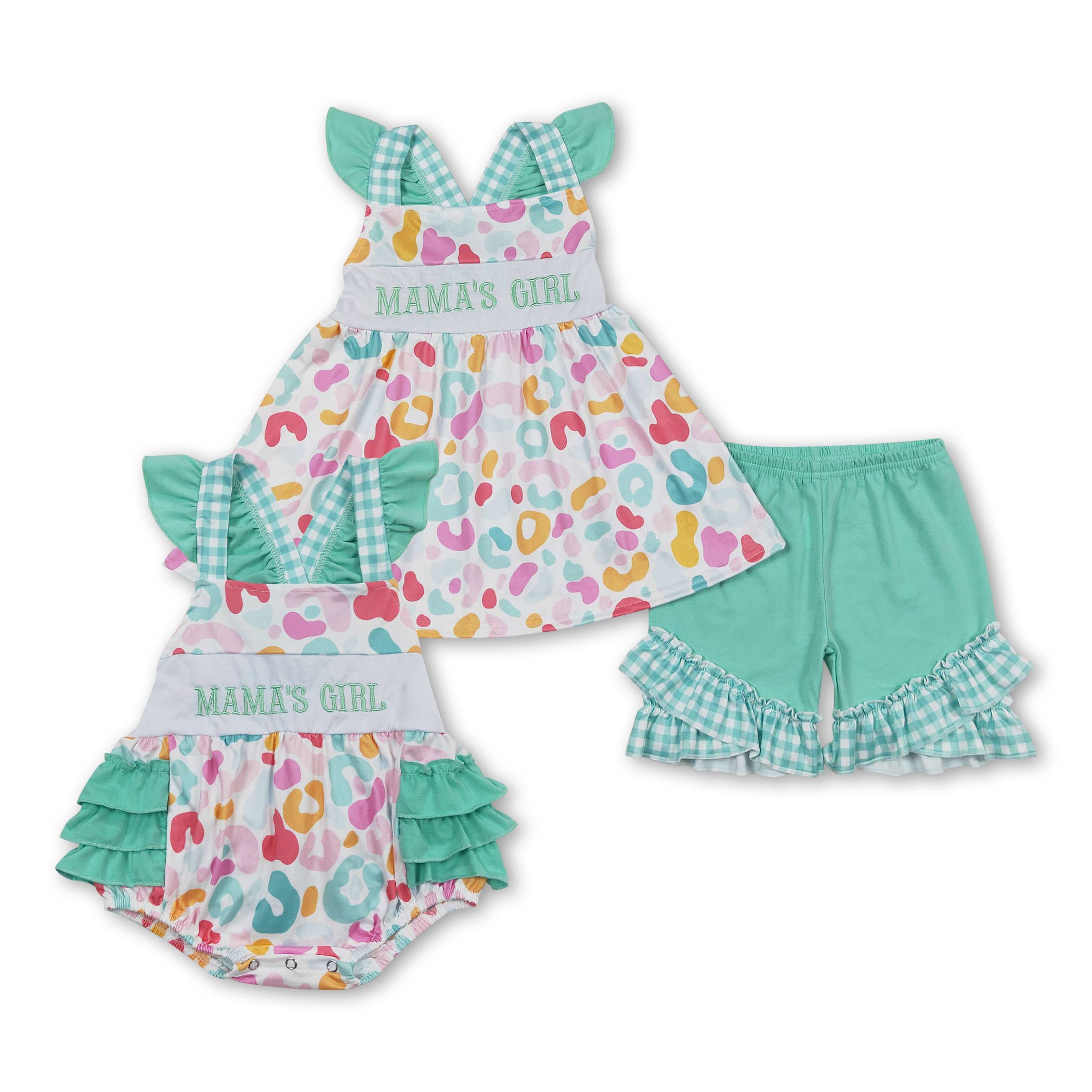 Made from soft, high-quality fabric, this floral ruffle top with matching striped bloomers combines comfort and a fresh, stylish design. It's the perfect outfit for celebrating Mother’s Day in adorable fashion!