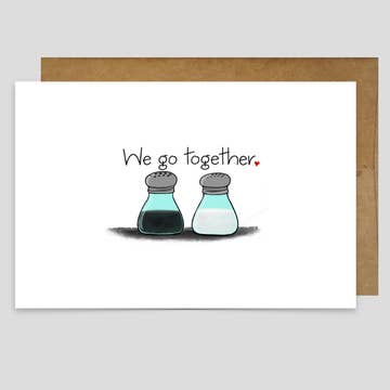 “We go together like red hats and family estrangement.” DETAILS // • Size: 5.5 x 4.25 • Inside Message: blank • Paper: white cotton • Envelope: brown bag • Printing: letterpress • Ink: black
