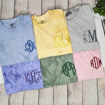 PLEASE ENTER THE NAME TO BE EMBROIDERED IN THE CUSTOM BOX *PLEASE NOTE SHIRT AND THREAD COLORS WILL MATCH THE PHOTOS, THESE CANNOT BE CHANGED* Shirt + Thread Color may vary slightly depending on lighting, screens, or filters. Color: Grey, Blue Jean, Wine, Peachy (Your choice) Embroidered on a Comfort Colors T-Shirt 100% US ring spun cotton Slim, comfortable unisex fit These are made on demand, please allow up to 14 business days to ship