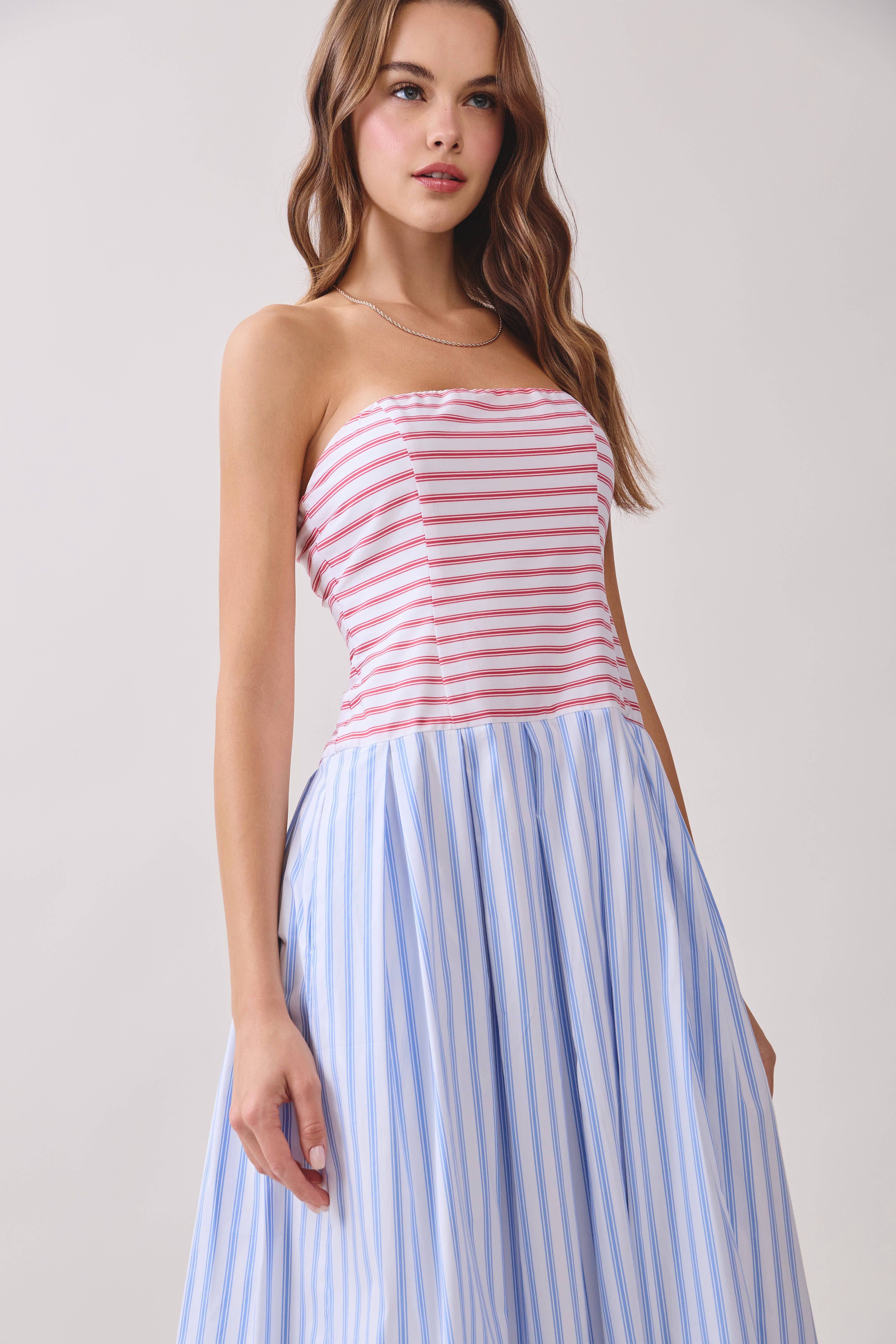 WHOLESALE C4143-PAN51 STRIPED V NECK TWIST FRONT CUT OUT SUNDRESS