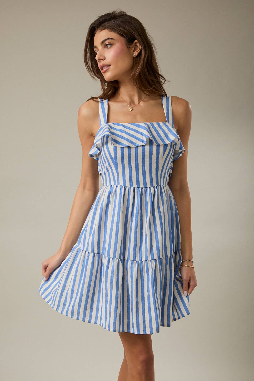 STRIPED V NECK TWIST FRONT CUT OUT SUNDRESS