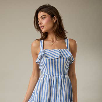 Made in India Aesthetic: Bohemian and Classic Dress Style: A-line, Fit & Flare, and Sundress Fit: Contemporary and Junior Neckline: V-neck Occasion: Day Party and Resort / Vacation Pattern: Striped Skirt & Dress Length: Mini Sleeve Length: Sleeveless