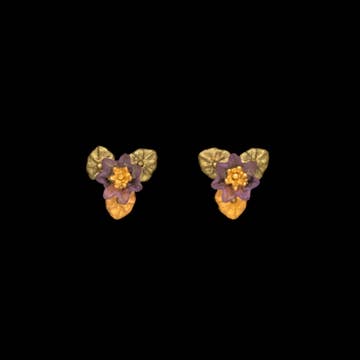 Wholesale Oval Pressed Dried Flowers 18K Gold Plated Post Earrings-PDF