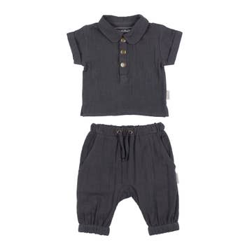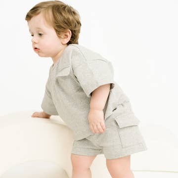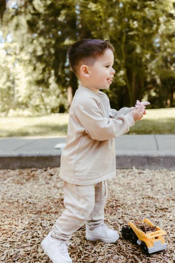 This Raglan Playwear Set in Dusty Blue is made of super soft cotton and designed for a gender neutral, oversized fit. It features a high quality, long sleeve raglan top and jogger style pants with square pockets and oversized fit. This set is perfect for year around wear. Machine wash cold. Tumble dry low.