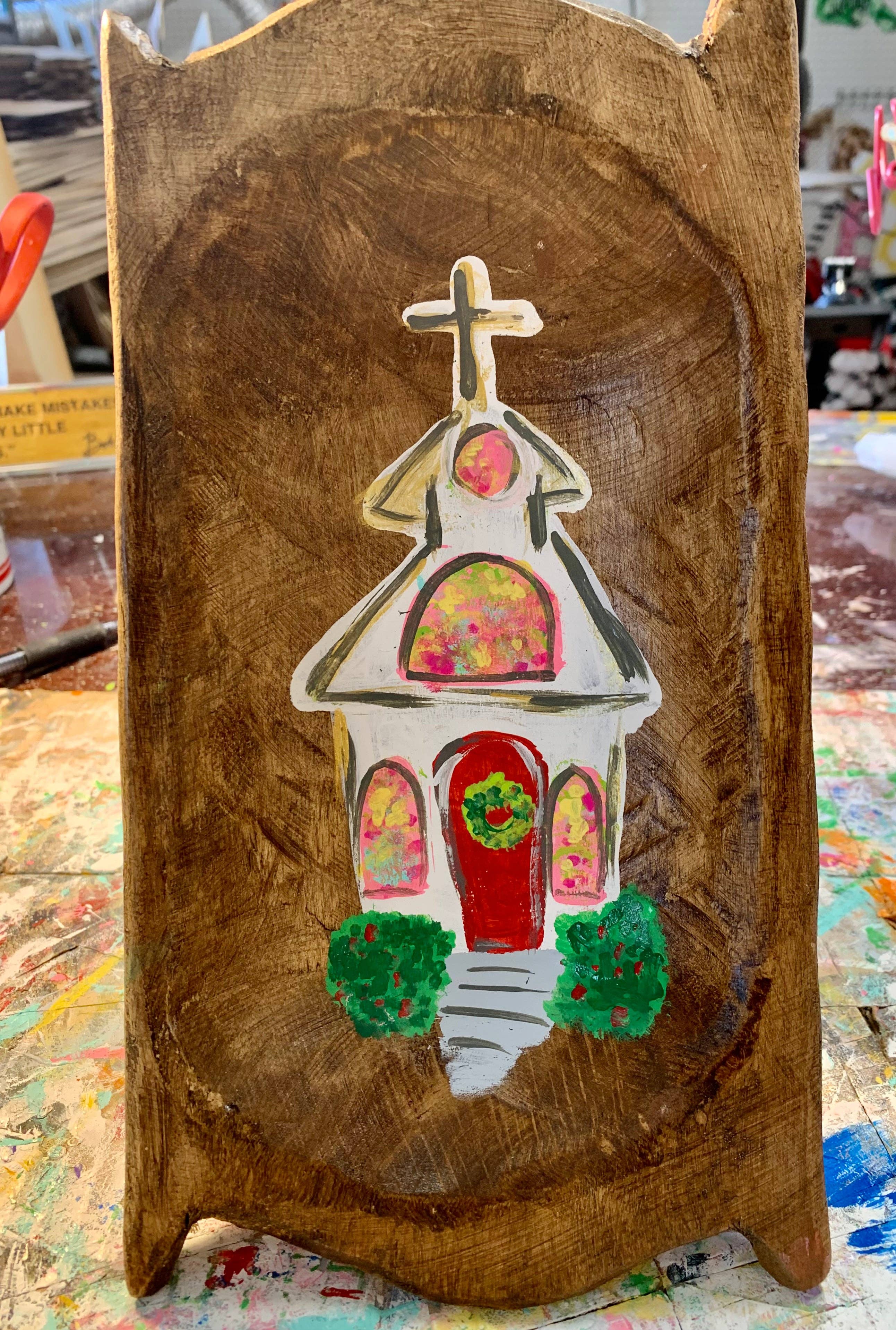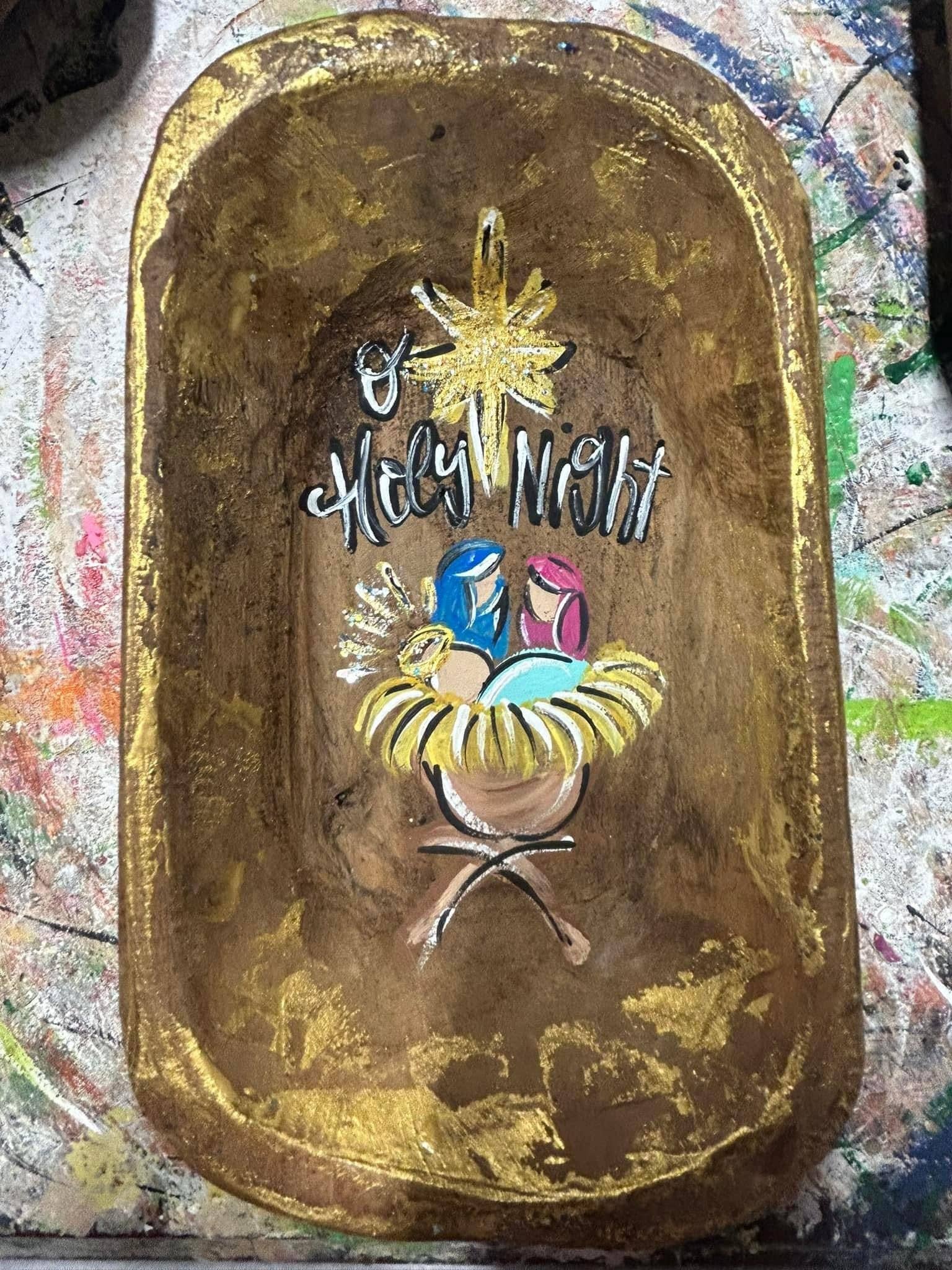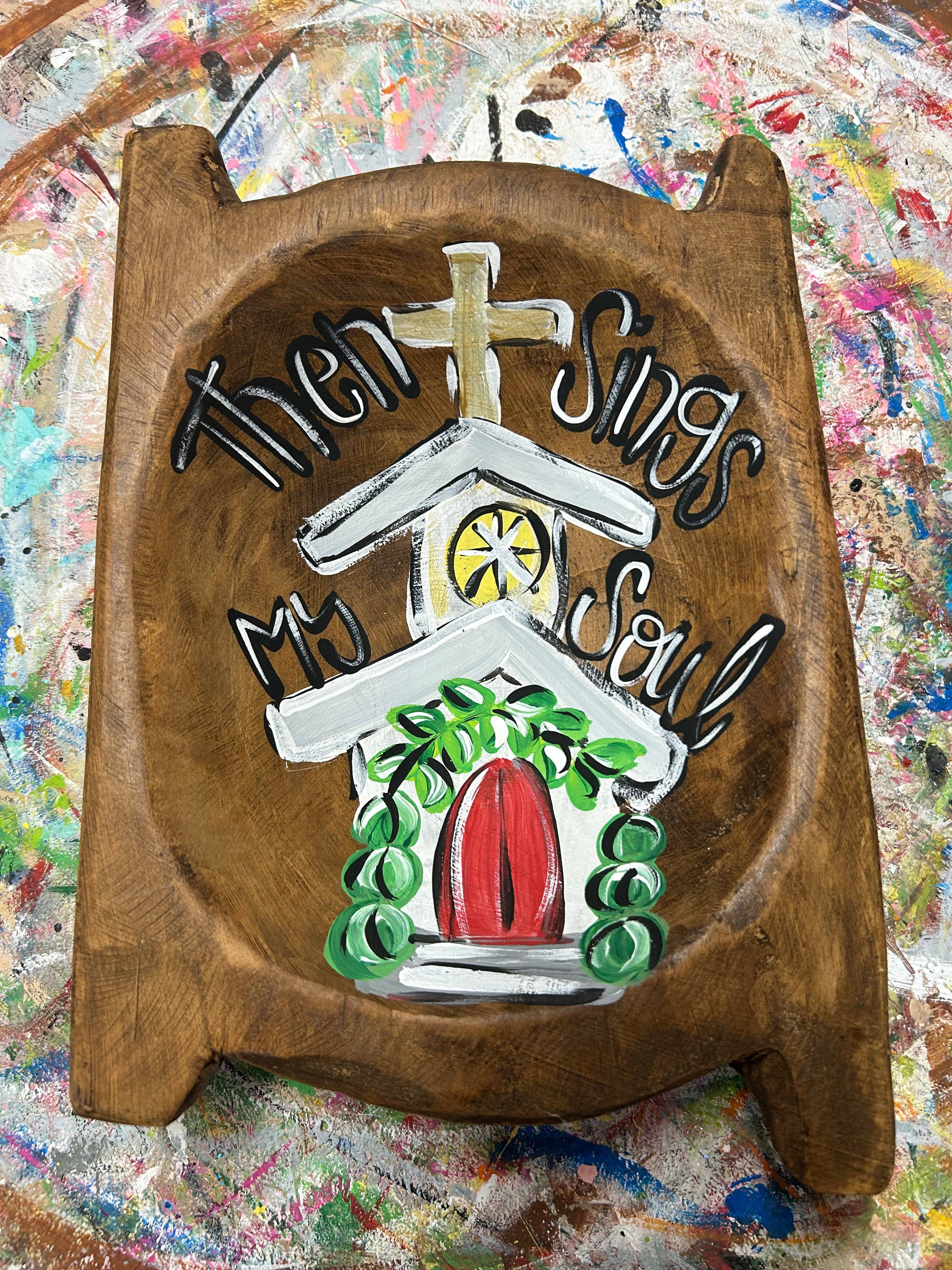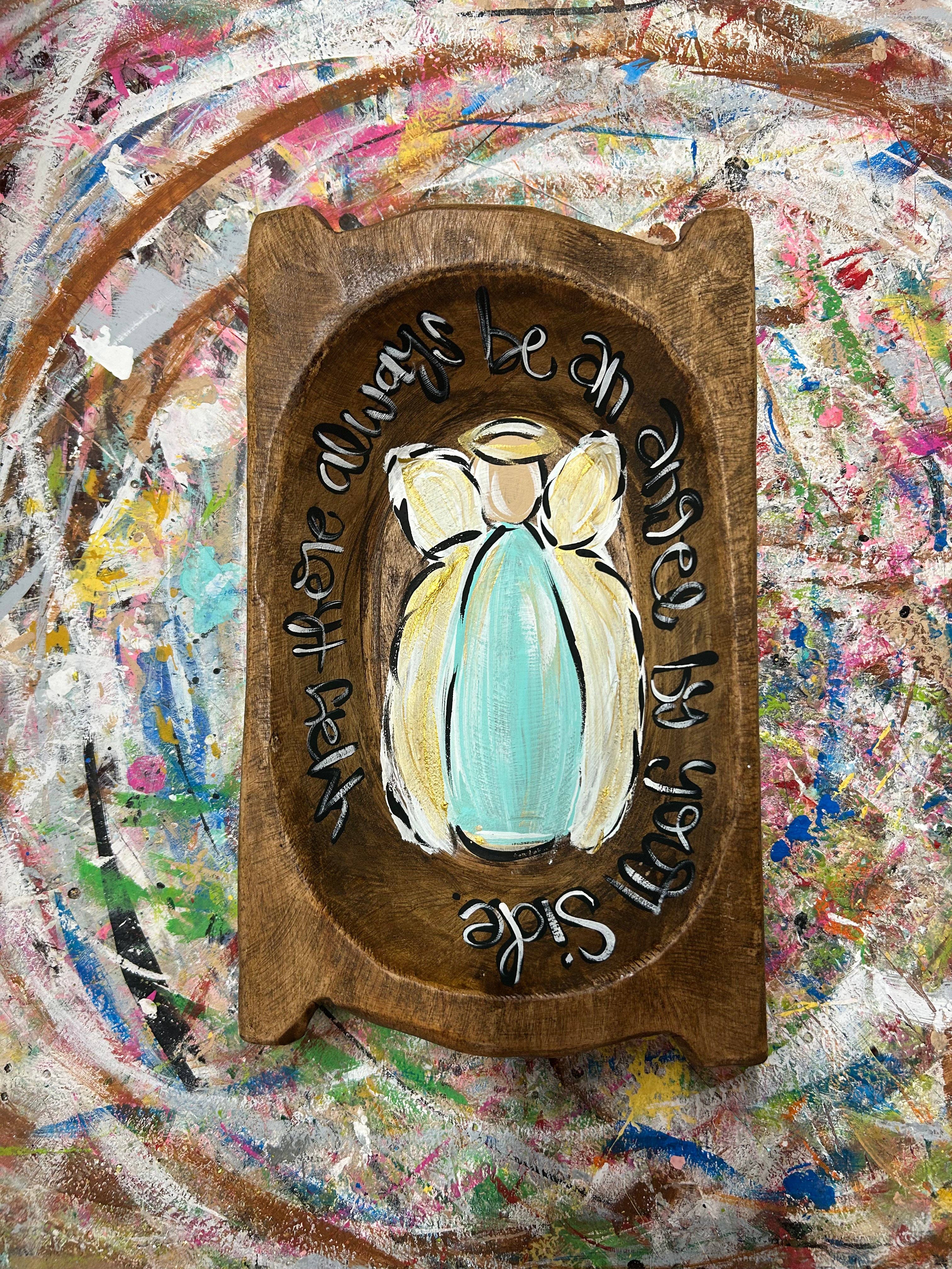 Hand painted (hand carved) dough bowl. No 2 are alike. These are roughly 6” x 10”.
