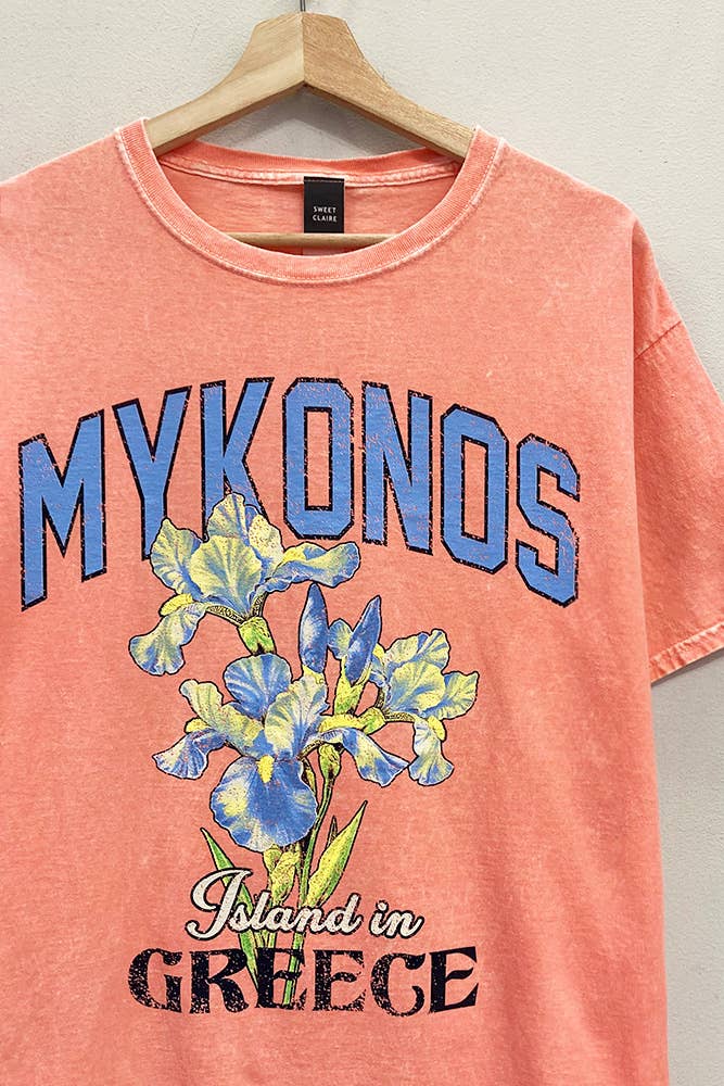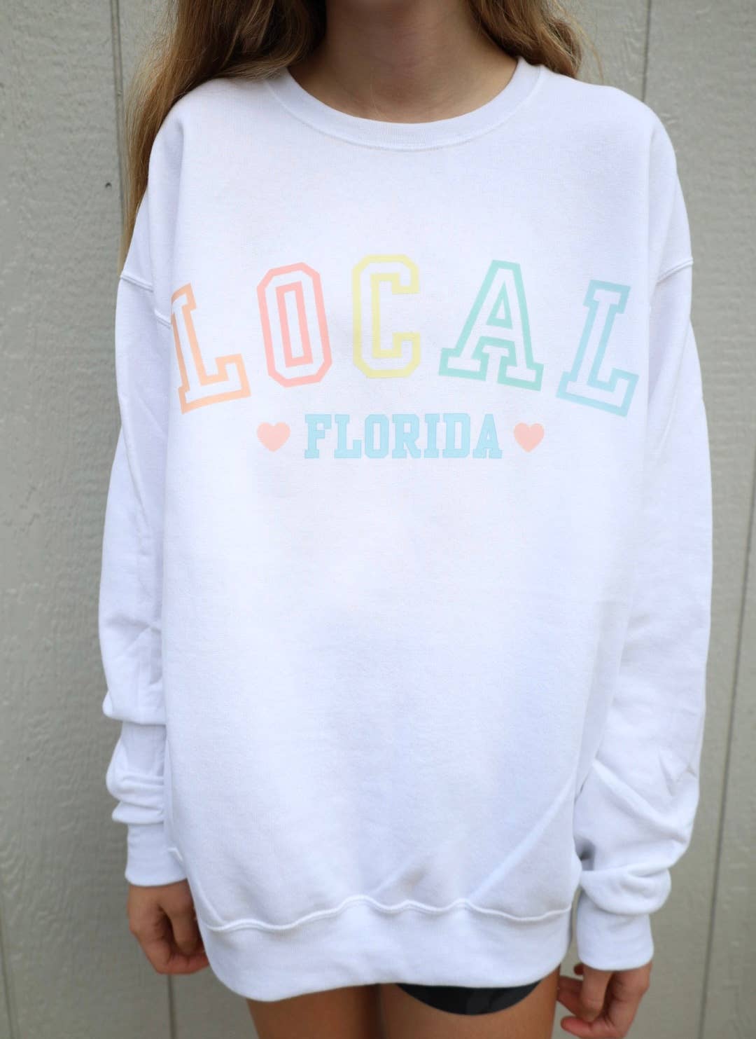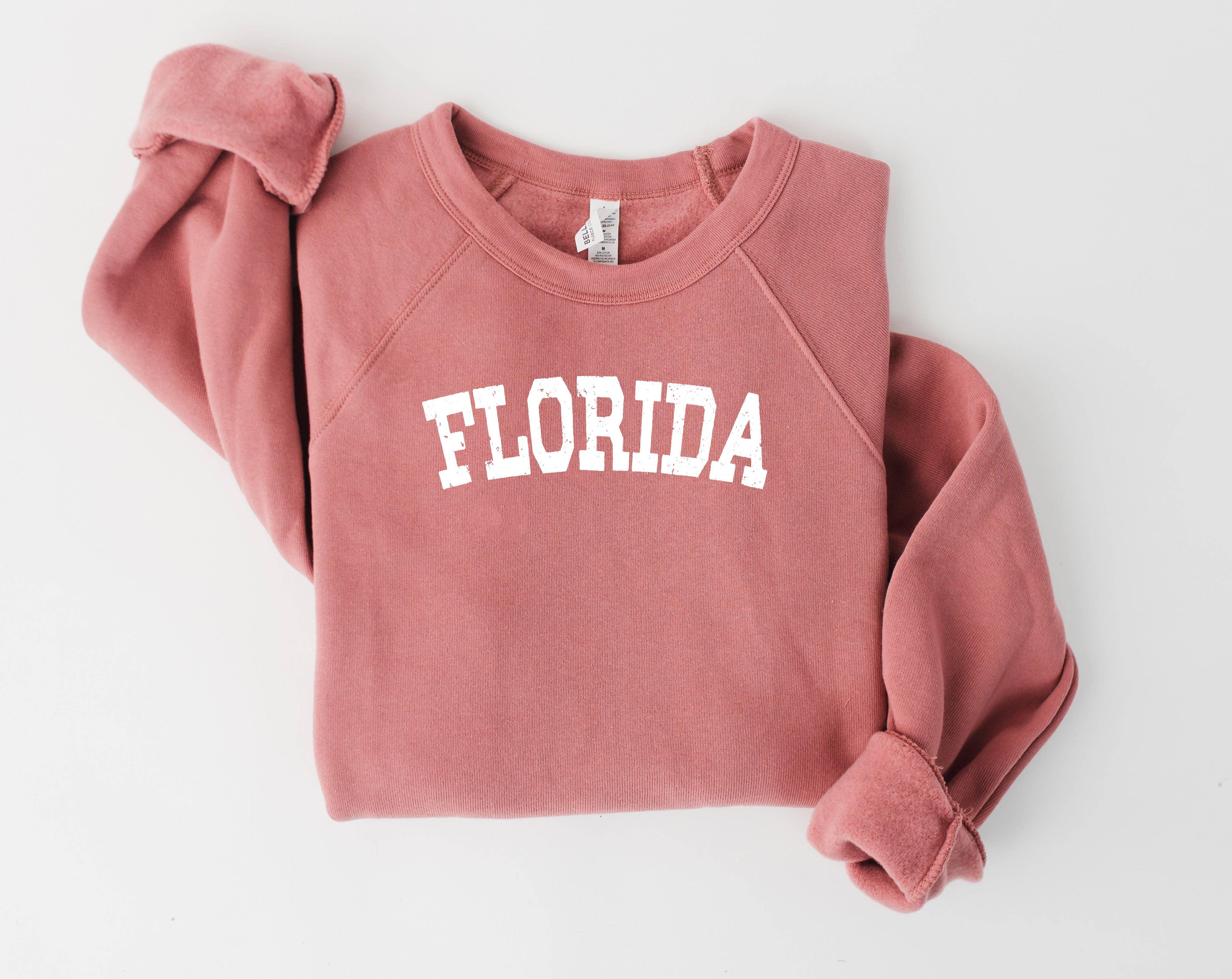 LONG SLEEVE GARMENT-DYED CREW-NECK SUMMER "SIESTA KEY FLORIDA" OVERSIZED GRAPHIC SWEATSHIRT *FEATURES CONVENIENT TEARABLE / TEAR AWAY LABEL.