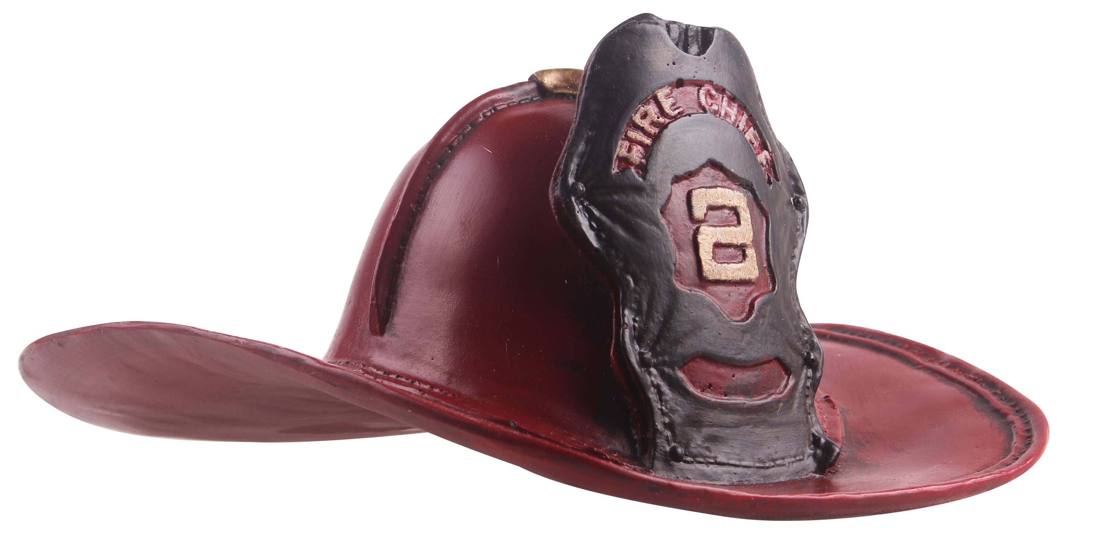 - Fully assembled and ready for use, simply unbox and display! - This piece incorporates a hand made, all metal construction with fabric accents - Fashioned in an iconic fire chief's hat Intended for decorative use only - Includes faux leather accent straps - Measurements: L: 14.75" x W: 12.5" x H: 8.25" - Weight per unit: 5 lbs Options: - Red: JA-0284R - Yellow: JA-0284Y