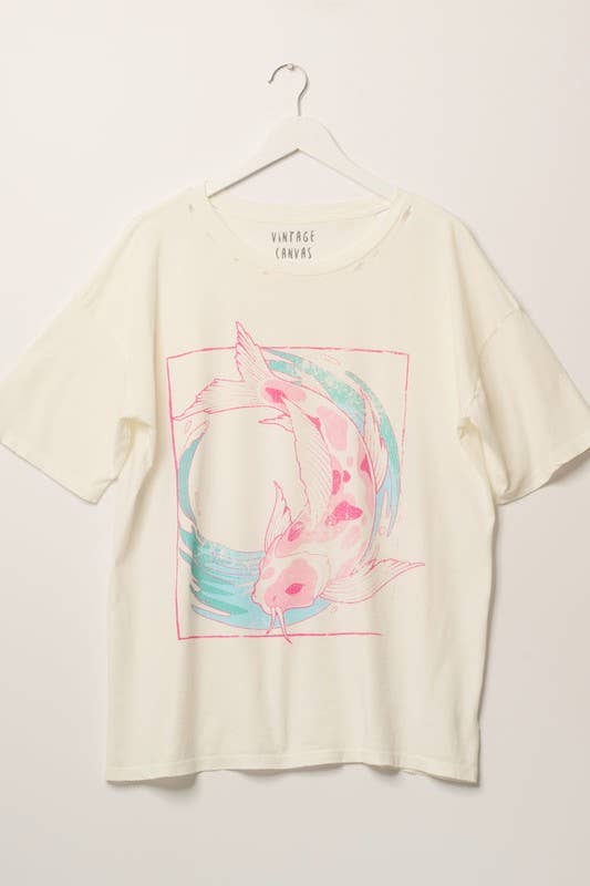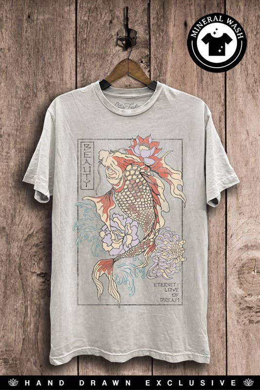 Tri-blend heather navy dolman top with koi screen print. Hand screen printed with eco friendly inks. Super soft comfortable tees. Made to order, minimum 3 pieces. These Tops are Loose-Fitting