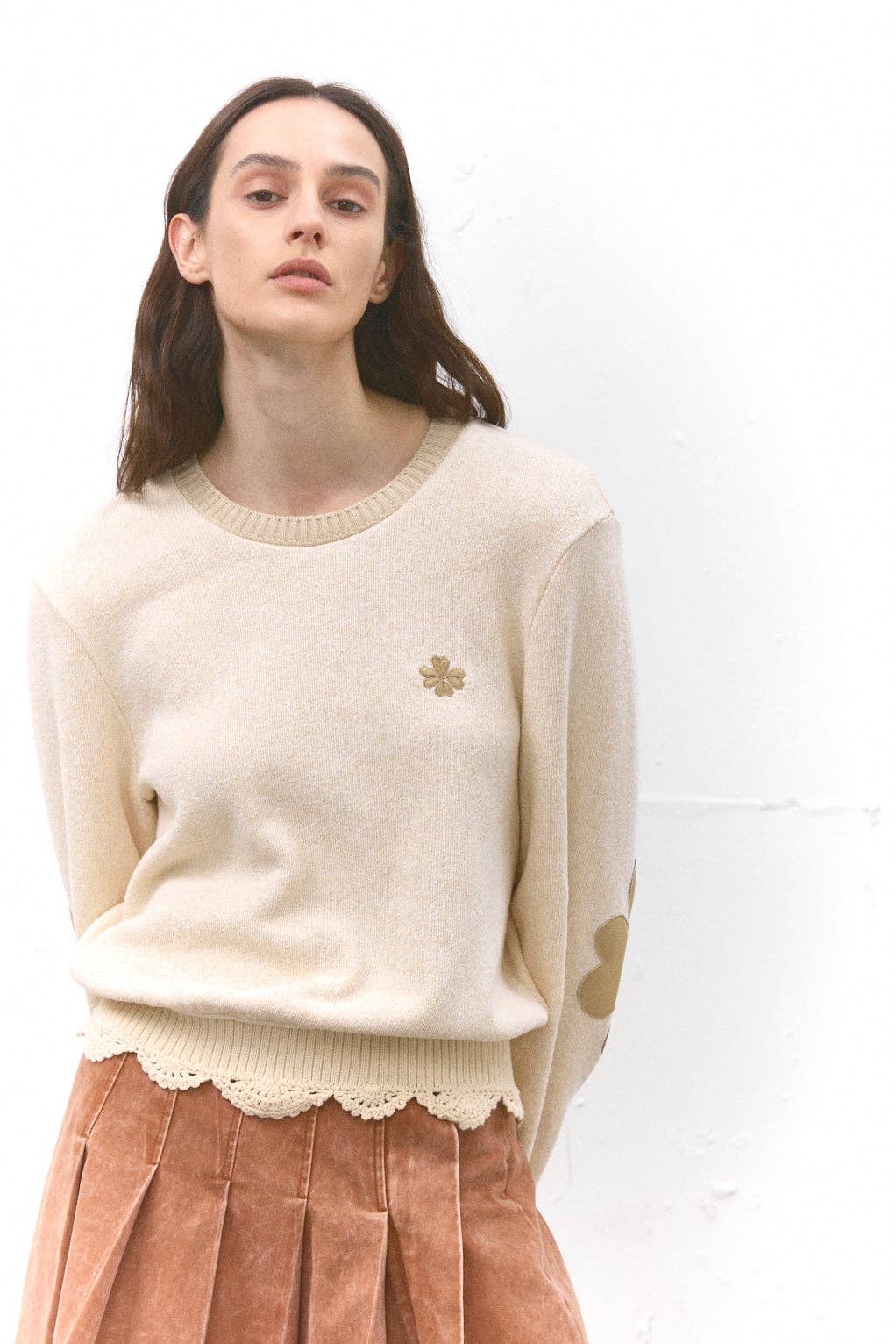 Norah is the sleeveless sweater we all want this season! To be worn with bare arms or with a shirt underneath. Vintage inspired by an oversized loose fit, it's a must have! The model is 175cm tall and is wearing a size 36 OUTSIDE 6% ALPACA, 24% WOOL, 60% ACRYLIC, 10% POLYESTER INTERVIEW DRY CLEANING/BLEACH PROHIBITED/MACHINE DRYING EXCLUDED/IRONING MAX. 100°C, ON THE INSIDE OUT