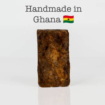 Traditional African Black Soap with Shea Butter is naturally moisturizing. Natural paper packaging made from water hyacinth fibers with inner plastic packaging made from 100% recycled polyethylene plastic. Handmade in Ghana from pure unrefined shea butter, virgin coconut oil, and cocoa pod ash. All natural and vegan. 4.2 oz/120g. Lather Soap Bar directly on wet skin and rinse off thoroughly. Allow to dry after use and store in a dry place.