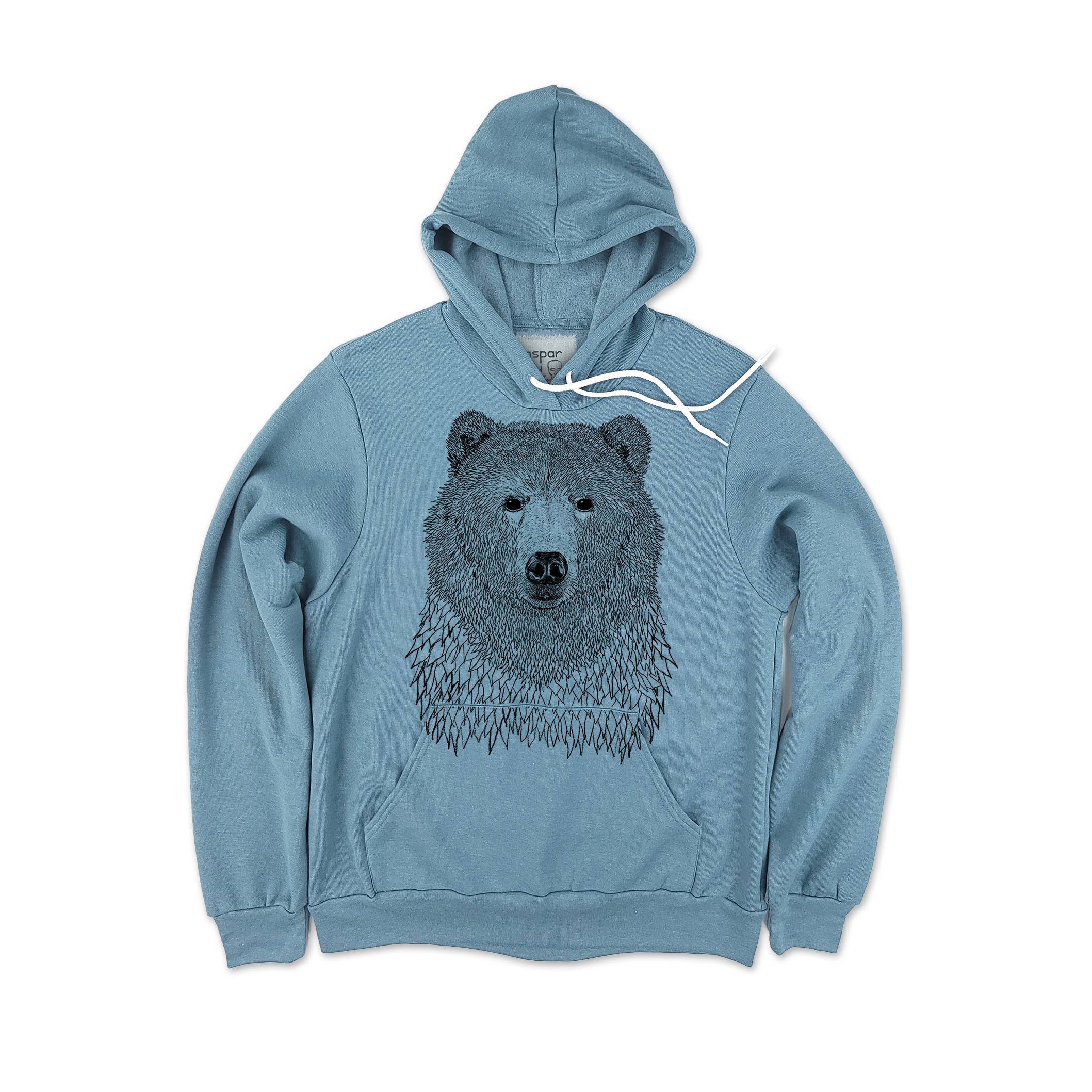 Wear the night sky with this speckled deep navy hoodie. Inspired by our ever-popular Supernal Nyx design, the pocket features a silhouetted forest against a star-studded sky. Relaxed hoodie with oversized hood (fits over headphones!) and large, decorative front pocket. Made Fair Trade from premium organic cotton. This speckled navy hoodie is embroidered on the left shoulder and printed seam-to-seam on the kangaroo pocket with non-toxic, water-based inks. Ditch the polyester sweatshirts, and upgrade in sustainability and style. • Exceptionally soft fleeced organic cotton • White-speckled, Midnight blue fabric • Relaxed, all-gender fit • Large hood + roomy, raglan sleeves • Starry-skied forest pocket design • Spiral tri-color drawstring