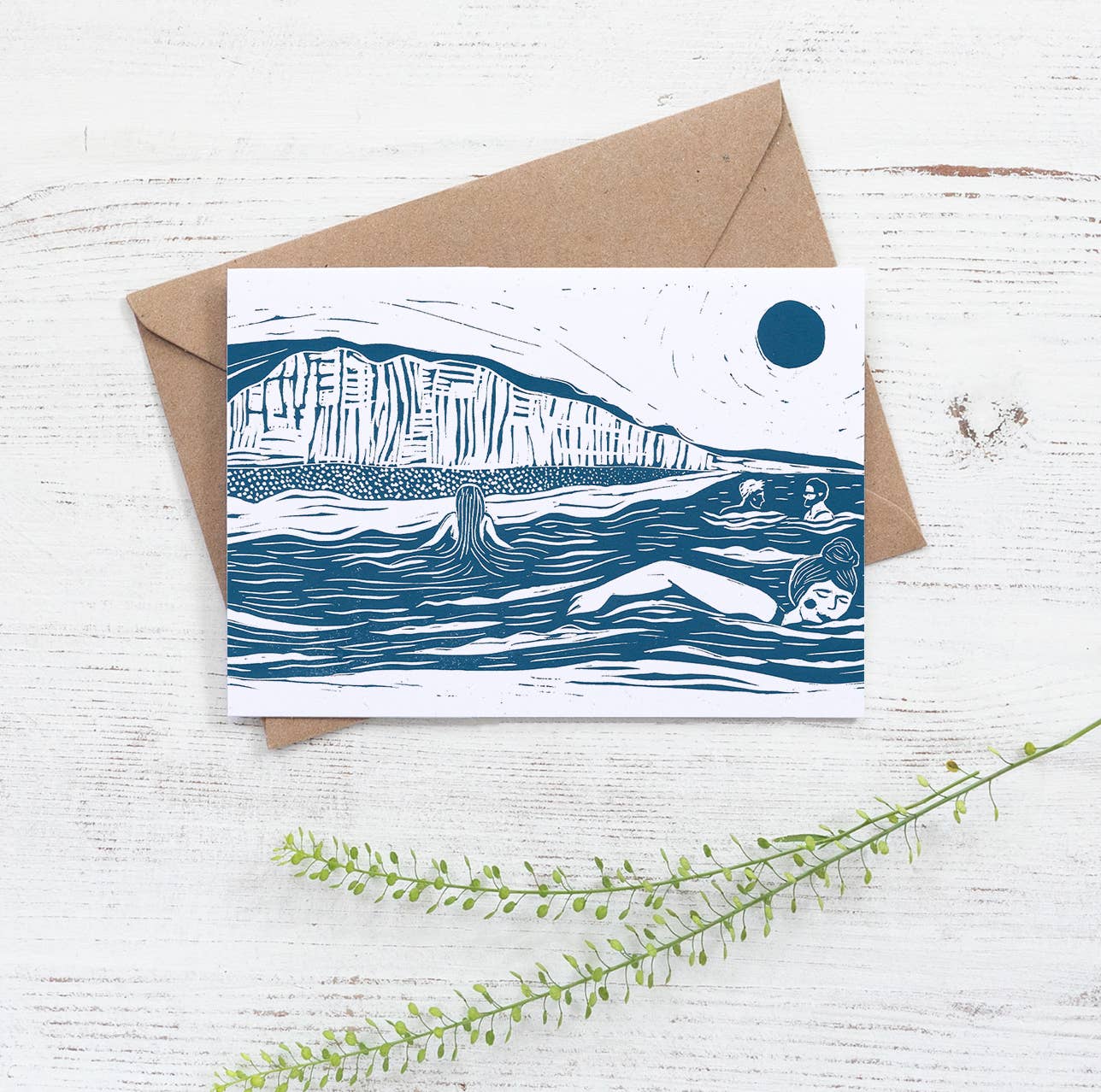 Blank inside with a brown Kraft envelope. Recycled card stock. Digitally printed from my original linoprint artwork Cards are supplied naked as standard- please message if you would like them individually wrapped in plastic.