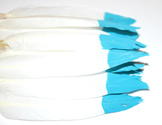 These premium white barred turkey feathers are hand decorated with natural howlite-turquoise. Add them to your hats and floral arrangements for extra southern flair! *Please note that since these are handmade using natural materials, each product will be slightly different.