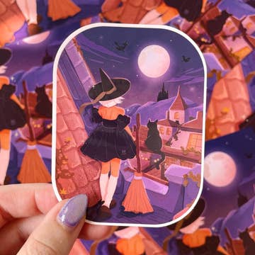 Bolts and Stars - Wholesale Sticker - Black Cat Witch Halloween Sticker5