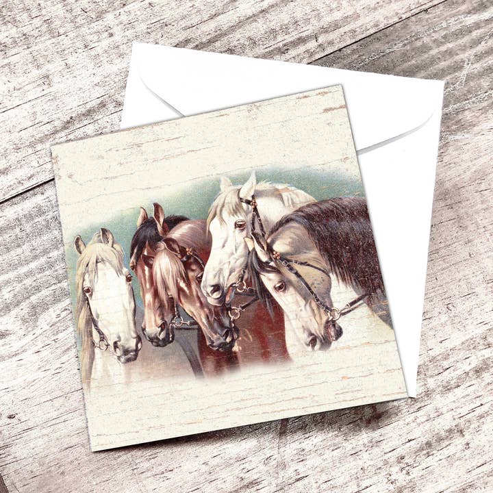 A vintage illustration of a girl pushing her bunnies in a baby carriage makes this a wonderful gift card for any occasion. Hand-painted touches of sparkle complete the image. The mini gift card is 3" x 3" and made in the USA from sustainable materials.