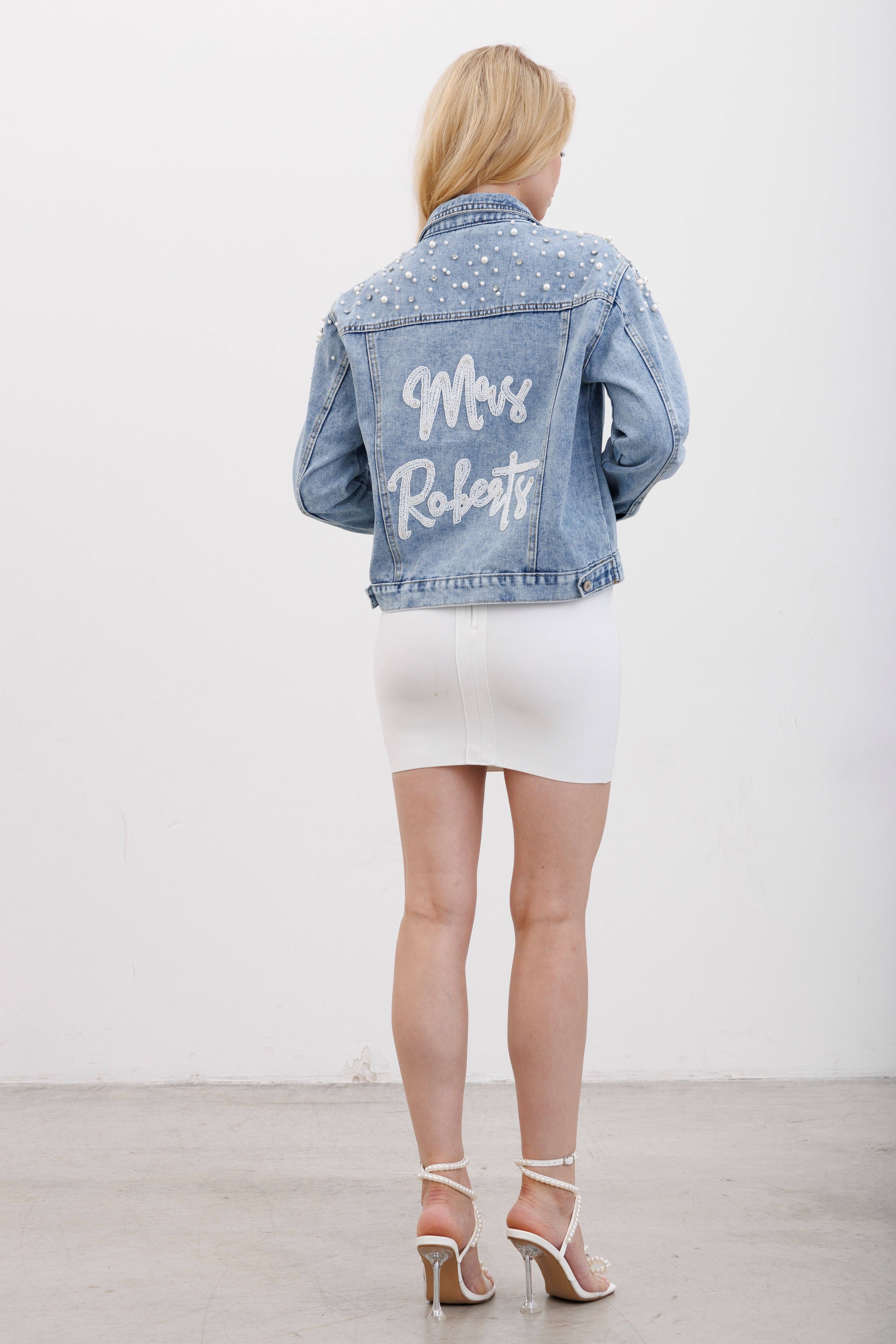 From the renowned Heirloom Bridal Company comes the Pearl Sleeve Jacket, a unique addition to your wardrobe. As a standout piece in our Women's Denim Jacket collection, this jacket embodies our commitment to crafting luxury bridal accessories. Each jacket is delicately crafted in our small Idaho shop, reflecting our dedication to quality and longevity. This jacket is not just a purchase, it's an heirloom to be cherished for generations.
