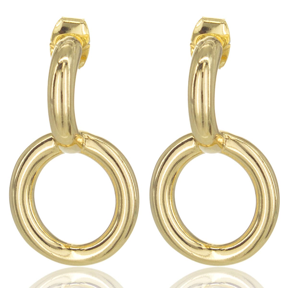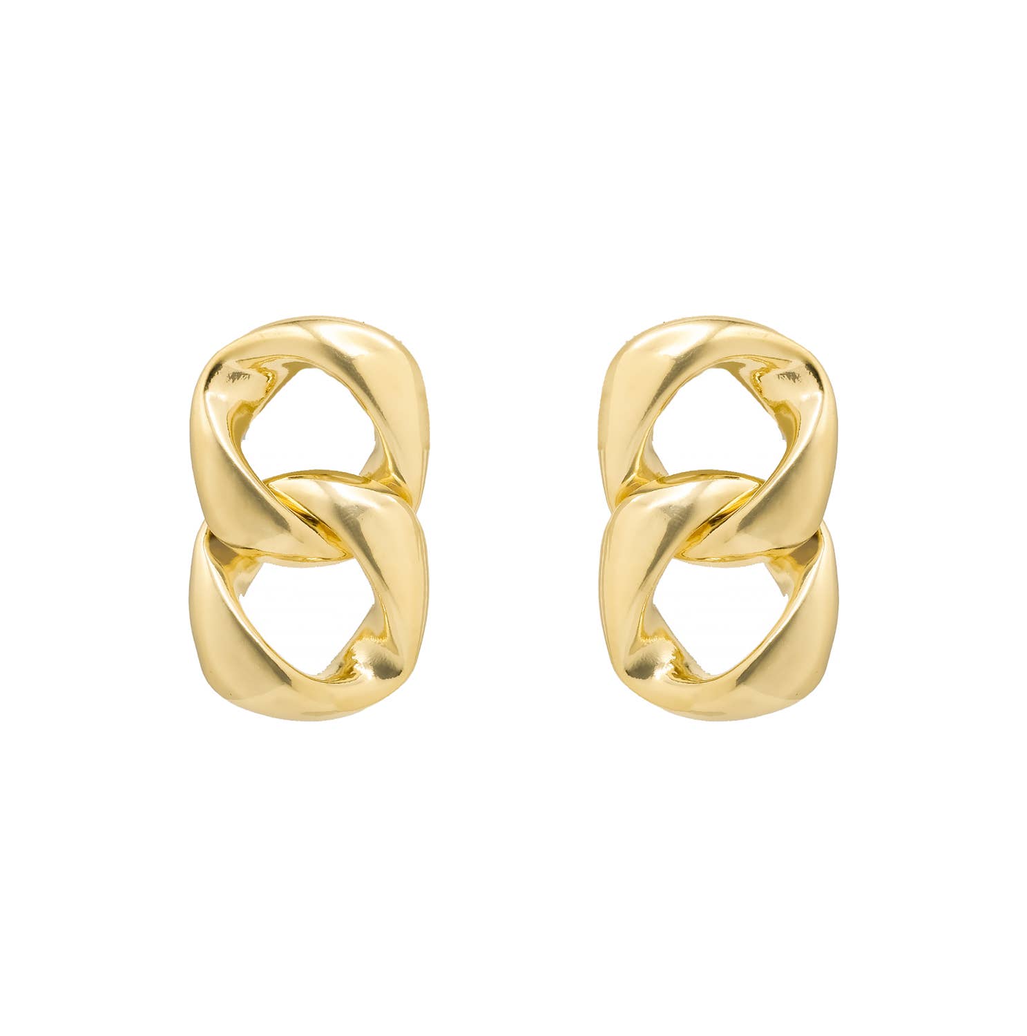 18k gold plated and silver plated textured interlocking three link earring.