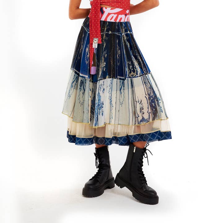 Elevate your seasonal wardrobe with our Skirt Chiffon. This classic fit skirt is a casual elegance of summertime, inspired by spring's vibrant floral beauty. This piece features an exquisite double layered hem design, capturing the essence of the season's bloom, perfect for any wardrobe.  The chiffon insert brings a sheer, ethereal quality to the piece, allowing for playful glimpses of leg and creating a breezy feel that's perfect for warmer weather. With its comfortable fit and whimsically detailed hem, this skirt is a perfect blend of fashion and fun, ideal for anyone who delights in the spring blooms. Model is 5'7" and is wearing a S/M. True to size, Slim fit at the hips. Hand-crafted and made-to-order, please allow approximately 4 weeks for delivery, ensuring you receive a product that is as special as you are.