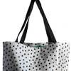 Large style lined Oilcloth tote. 20" x 15" deep, 3" gusset allows a nice width, black webbing straps. A popular print on the outer and a complimentary print color for the interior. Our large totes are perfect for groceries, the beach, gym and knitting supplies. Makes a great bag for babies and organizing your stuff! Waterproof and Wipe clean. Check our medium tote for smaller loads and people!