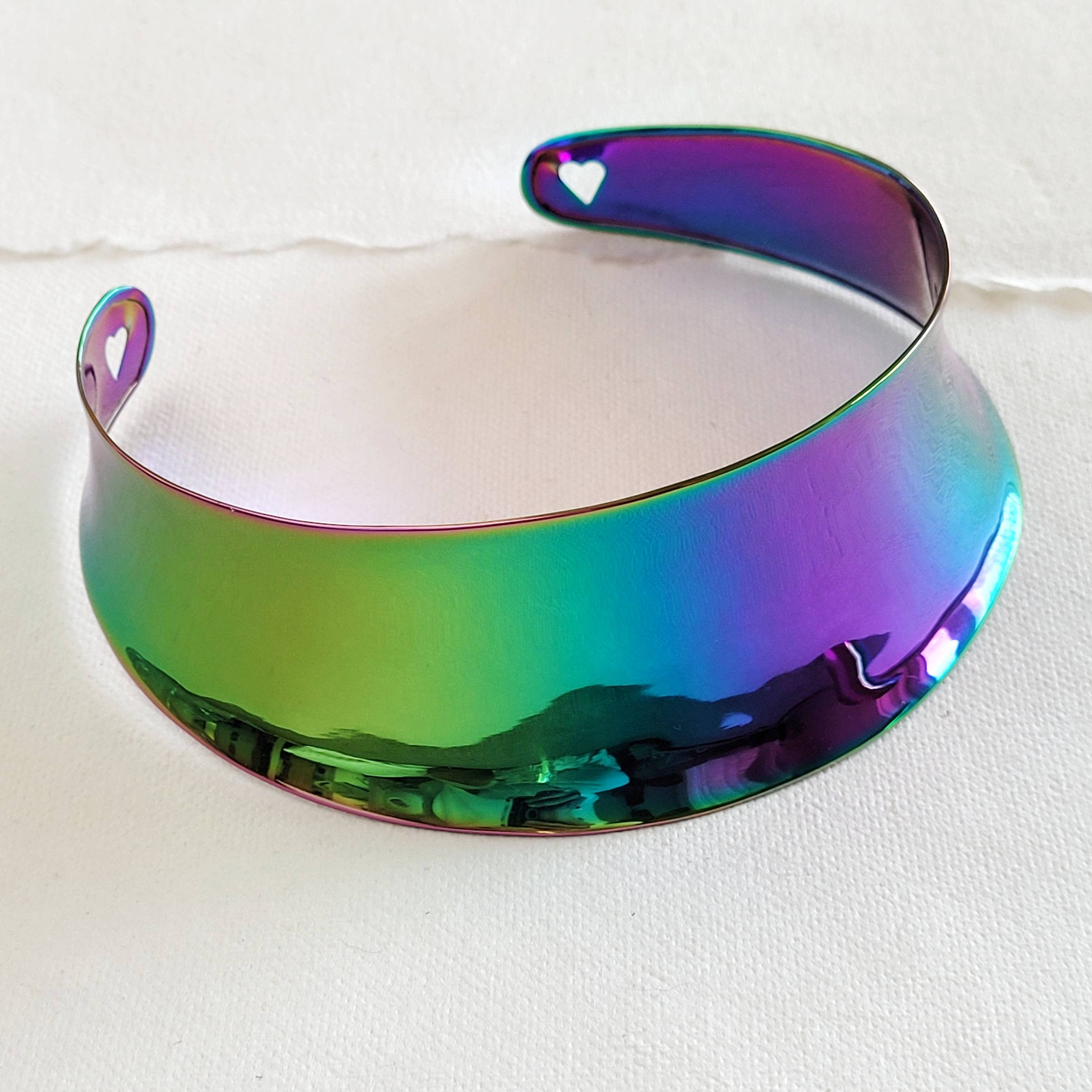 I hand-cut rainbow ribbon cable to length and clamped it into a silvertone cord end. The bracelet features 1-1/4" (3.cm) of extender, with a cute blue resistor charm at the end. The bracelet is 5/8" (1 cm) wide and the size is adjustable from 5-1/2 to 6-3/4" (small), 6-1/2 to 7-3/4" (medium), or 7-1/2 to 8-3/4" (large). Since ribbon cable derives its color from plastic wire insulation, this bracelet is comfortable and soft to the touch. Choose your packaging: tagged or boxed.