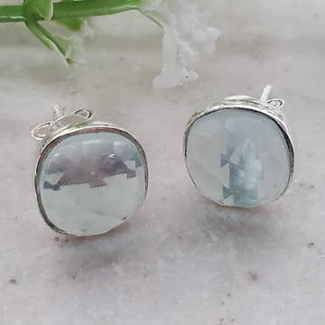 For the cat lover - sterling wire wrapped and hand formed stud earrings with white agate stones. 6mm (1/4") smooth & round creamy white agate stones securely hand wire wrapped with sterling silver wire. A base metal clutch finishes the earrings. These earrings are sealed with a museum grade micro wax to prevent tarnish. This is a stock photo - the earrings may have slight variations.