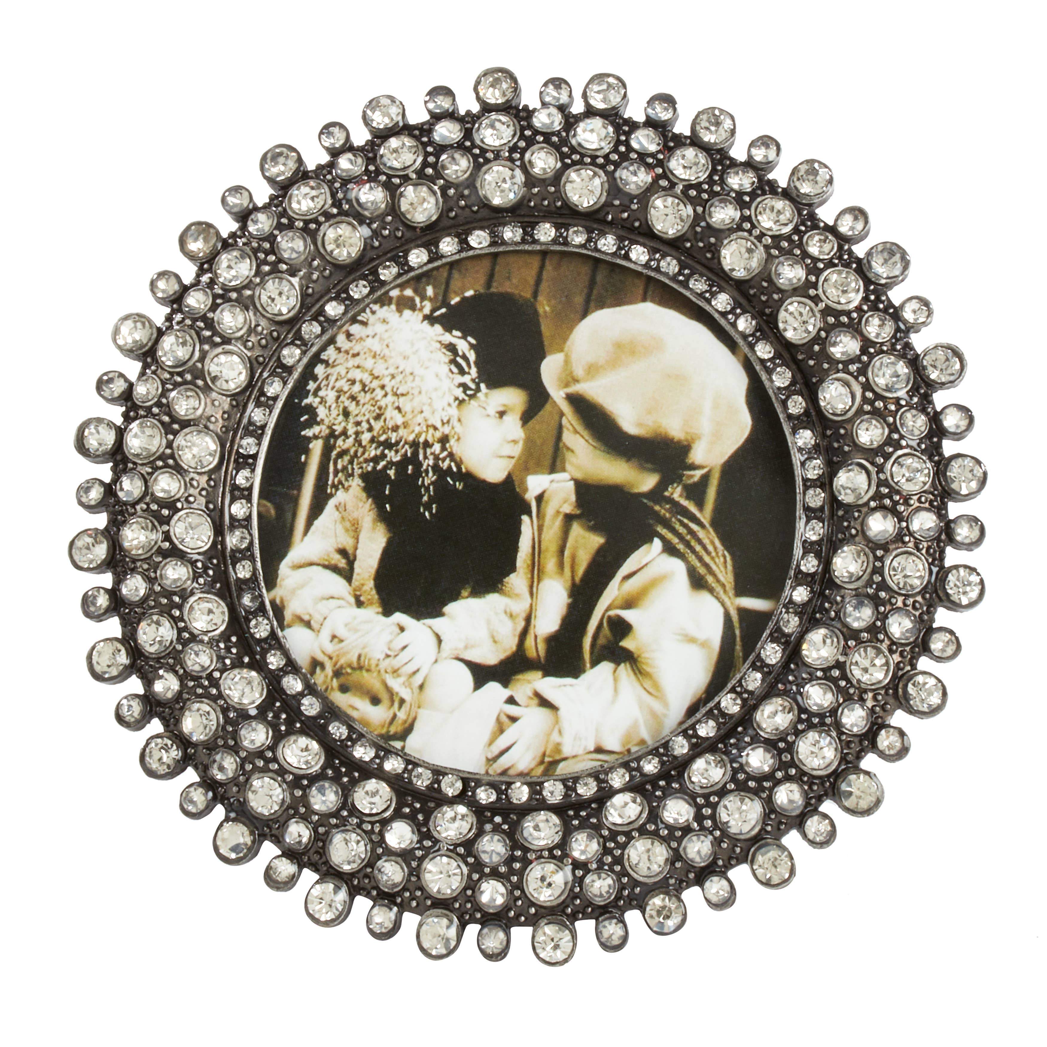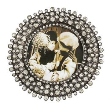 Add a touch of luck to any space with a glamorous pewter horseshoe picture frame. Encrusted with hand-set clear pavé European crystals. This picture frame features: * Holds 3.5" photo. * Moiré silk back. * Tarnish resistant. * Signature luxury gift box included. Jon Morris established OLIVIA RIEGEL in 2000 as a tribute to his beloved grandmother—a consummate collector of chic costume jewelry. His vision was to offer customers elegant bejeweled objects that incorporate vintage details with a modern sensibility. This picture frame is part of our Traditional Frames Collection. This is: silver picture frame, gold picture frame People also consider: Classic Crystal Pavé Frame Perfect for: gifts for her, luxury home décor, gifts for women, equestrian gifts, horse shoe