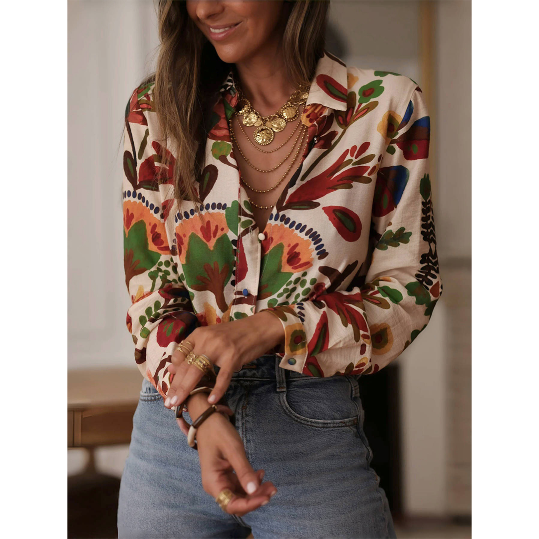 Chic Vibrant Floral Print Button Down Blouse