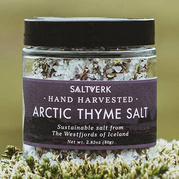 Arctic thyme is an herb unique to the sub-Arctic climates of Iceland, Greenland, and the Faroe Islands. Its season is fleeting, blooming only for a few short weeks in the summertime. For Icelanders, the scent of arctic thyme evokes adventures in the Highlands and exploring the magnificent Icelandic countryside during the endless daylight of the Arctic summer. Tasting Notes :: Arctic Thyme is in the family of thyme, but has a sweeter flavor and a lavender-like scent. When paired with our sea salt, it brings both herbaceousness and a true expression of the wild nature of Iceland to whatever you choose to create. All of our salts are crunchy, mineral-rich sea salts - the higher mineral content, and flaky structure give each of them a rich flavor. Key Descriptors :: Floral, Herbaceous, Unique Best Pairings / Recipes :: The salt is ideal for curing meat and fits perfectly with the Icelandic lamb as well with other game meat. 80g (2.82 oz)