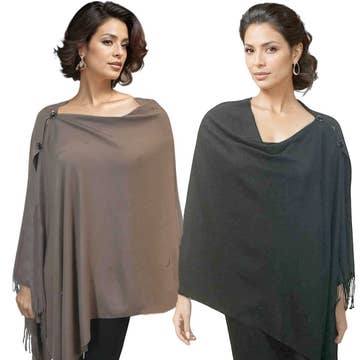 Asymmetrical ponchos sweater in longer* version. Unique design in ultra soft brushed sweater jersey. Lightweight and stylish of rayon blend with spandex. Great layering piece. Travel essentials. All seasons wear. One size fits all. * 2" longer in length than our regular poncho. Care: Hand wash cold preferred. Machine wash cold in wash bag; gentle cycle. Dry flat. Made in San Francisco.
