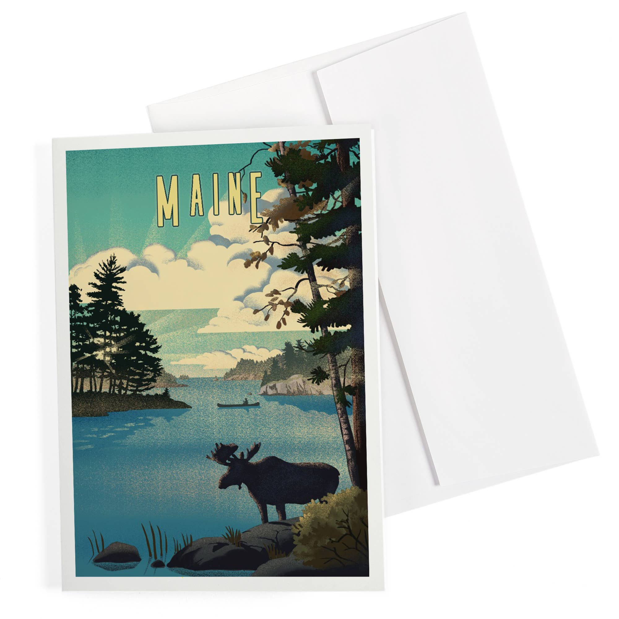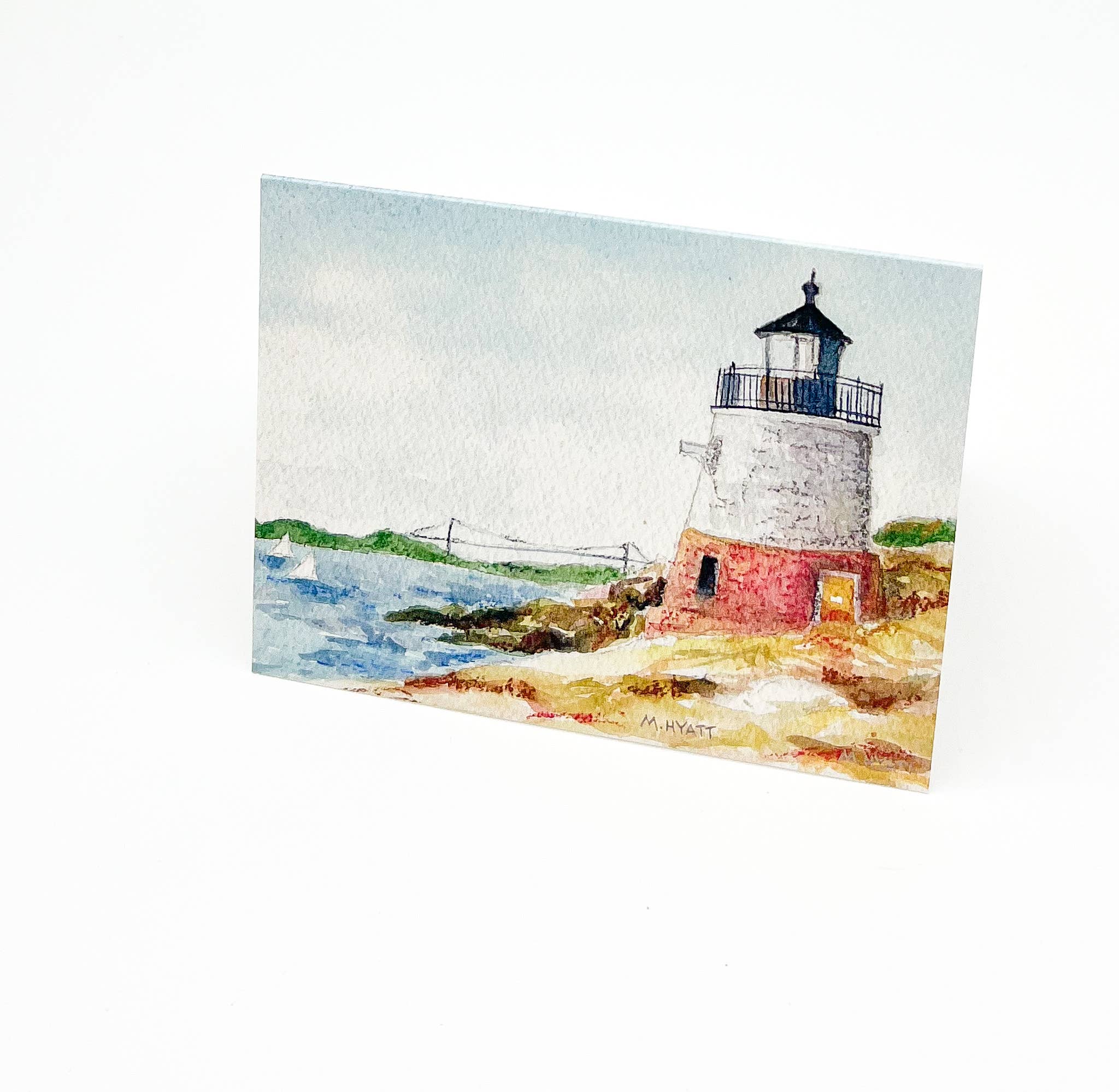 These Maine greeting cards are printed from my original watercolor painting of this beautiful state. The image on the front showcases the Portland Head Lighthouse. These cards will be packaged in a set of 6, envelopes included. Tied with navy/white twine and placed in a clear cello bag, they are ready for display in your shop! They are A2 in size. Cards measure 4.25 x 5.5 inches. Cards are printed on high quality, heavy weight 110 lb white card stock with a UV coating for a nice lustre look.