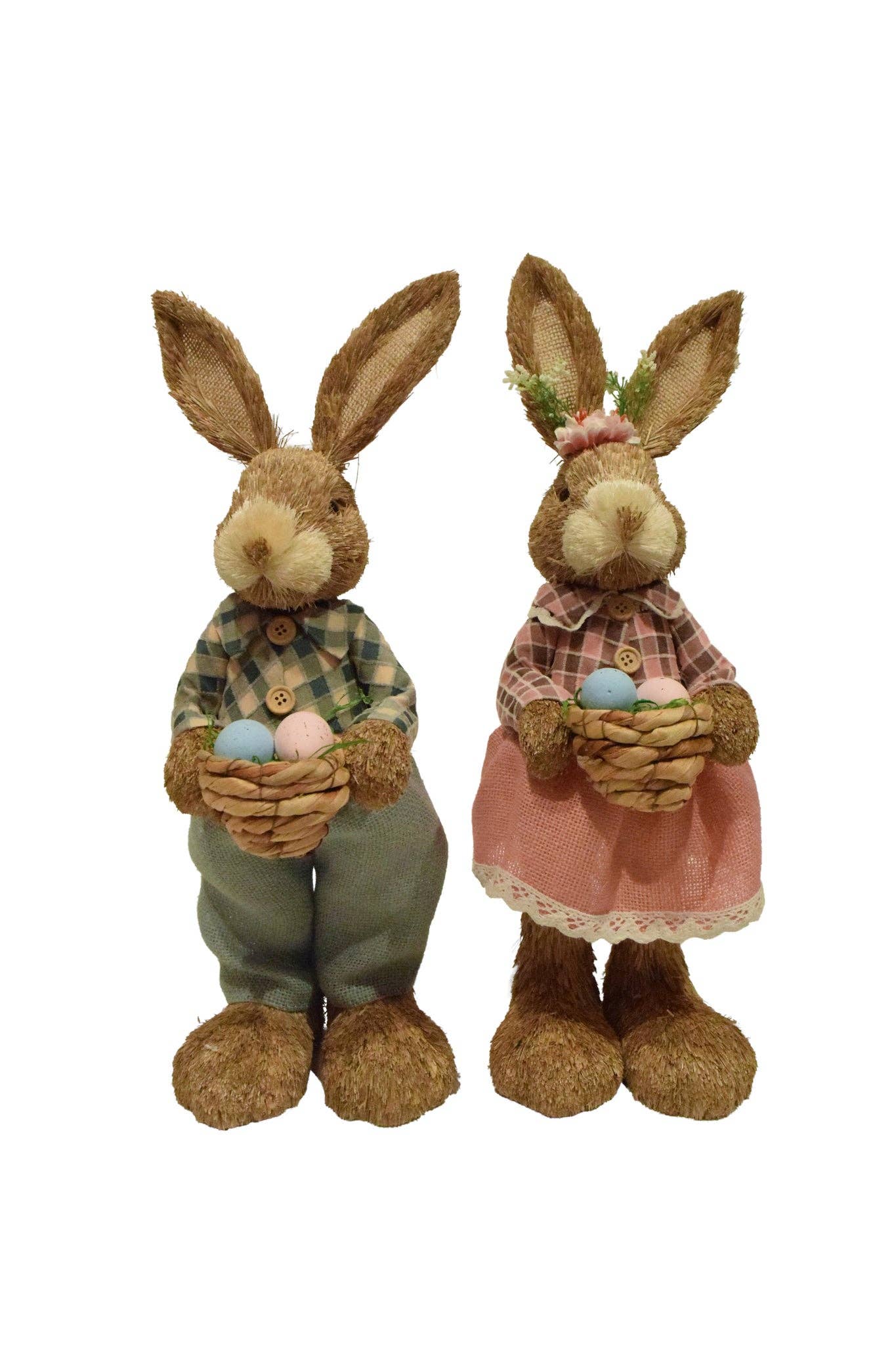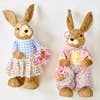 Celebrate Easter with this 20" Natural Sisal Standing Easter Bunny Holding a Basket of Flowers & Wreath. This charming bunny, made from natural sisal, is holding a basket filled with colorful flowers and colorful wreath. It’s a perfect tabletop decoration to bring a festive and cheerful touch to your home this Easter.