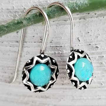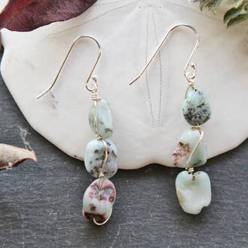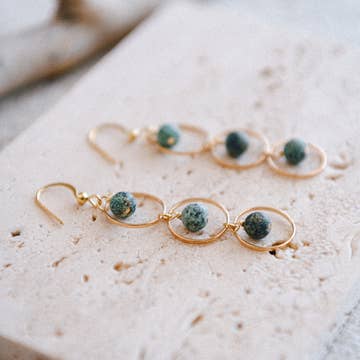 Minimalist earrings with just a touch of macrame and color! Sterling sliver 20 gauge wire in a hand-formed circle is adorned by a 6mm aqua terra jasper bead attached with a simple macrame knot. Water-resistant, wear them all day for all of your adventures! Handmade in California. Free shipping on orders over $50.