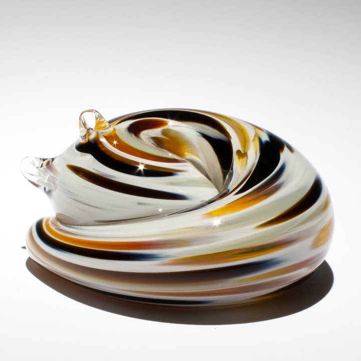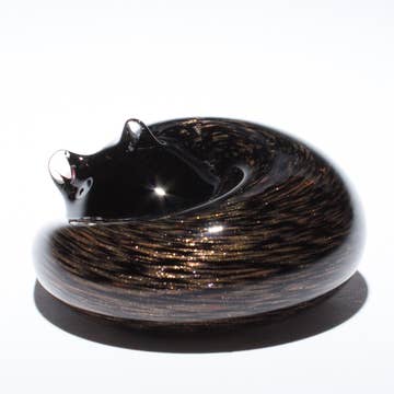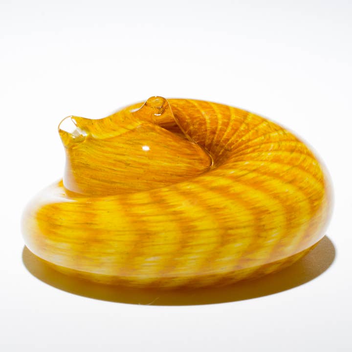 It's no secret that we're cat lovers at the glass studio, especially with four rescue cats running around entertaining us. Our series of handmade glass Sleeping Kitties was inspired by the quiet moments when our furry friends curl up and take a break from distracting us. We created six unique styles after some of our favorite breeds. Our Sleeping Kitties make the purrfect companion for all the animal lovers out there, and have the added benefit of being allergy free, no litter box or feeding needed. Affordably priced to be a thoughtful, and adorable gift. Handmade by our talented artists at our Michigan studio from 2000 degree solid hot-sculpted glass with layers of colors encased under clear glass. They're finished off with a heart stamp in the glass on the bottom, signed and dated. Approximately 3"L x 3"W x 1"H Handmade Women Owned Proud partner of Michigan Humane Sold individually - mix and match to match your client's needs Care Instructions: Hand wash