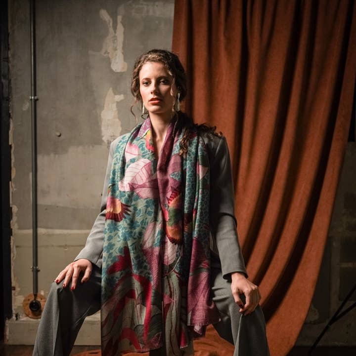 Crafted from noble materials – cashmere, wool, and silk – it is as comfortable as it is elegant. Its generous dimensions (200 x 70 cm) allow it to be worn in multiple ways, for a warm winter with a touch of creativity. Each scarf is printed with an exclusive design imagined by the FST studio, blending graphic art and textile refinement. It is presented in gift packaging, true to the brand's universe. ✨ Product Features: Composition: 60% Cashmere · 30% Wool · 10% Silk Dimensions: 200 x 70 cm – ideal for wrapping up comfortably Exclusive FST printed design Premium finish: Soft touch, fluid drape, natural warmth Delivered in a gift box: Carefully crafted packaging in the brand's colors, ready to gift