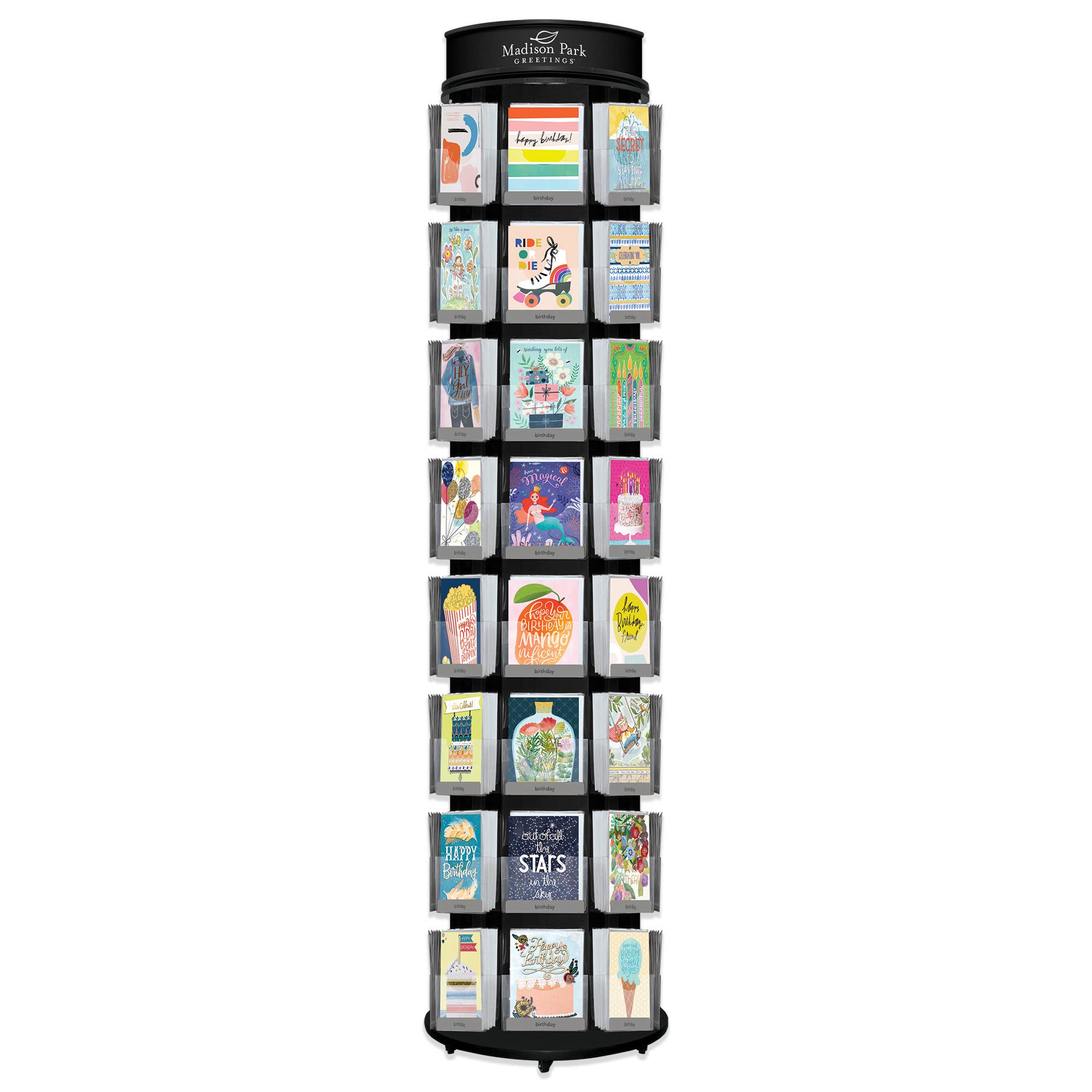 Maple wood and acrylic floor spinner. 19" w x 67" h Holds 48 card styles, 6 each. See "Collections" for a suggested best-seller fill. Note: Wholesale price shown is for the display only. Retail price does not apply.